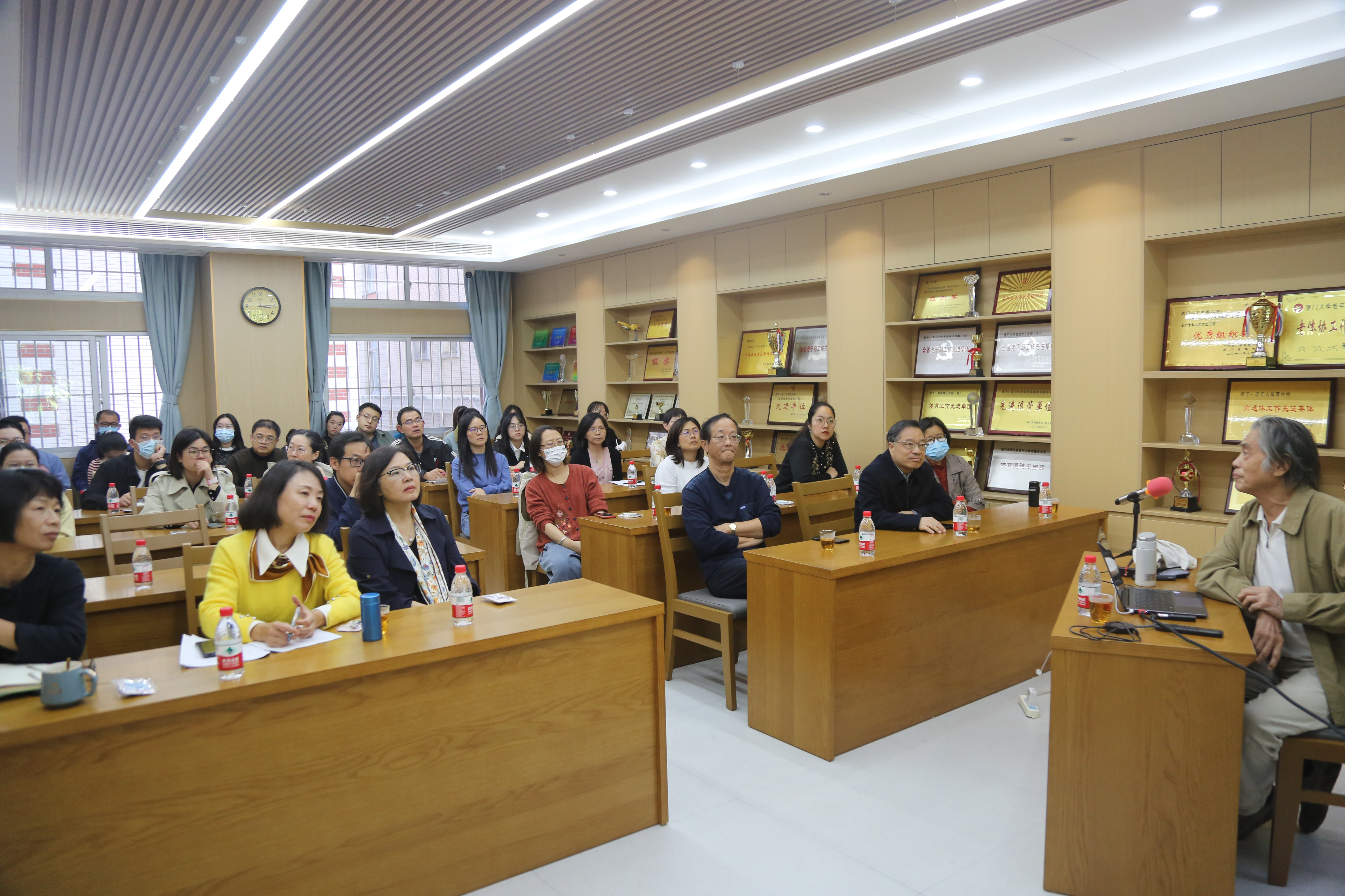 12月8日,机关文化大讲堂第10讲在思明校区南光八号楼会议室举行。本次活动由机关党委主办,文博中心和机关团委共同承办。中国美术家协会会员、厦门大学艺术学院美术系退休教授洪惠镇应邀做客大讲堂,做题为《对生命有益的艺术——传统中国画》的学术讲座。机关党委书记陈雪玲出席,档案馆馆长兼文博管理中心主任王瑛慧主持活动。