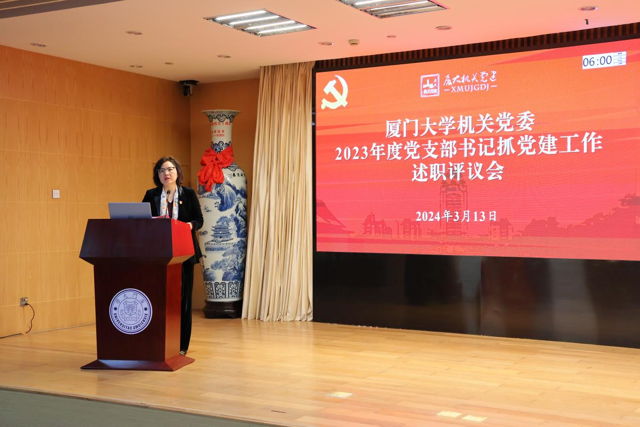 陈雪玲对本次述职进行点评。她指出,过去一年机关党支部书记能够围绕学校发展大局和中心工作,团结带领机关党员干部开拓创新、团结拼博,推动机关党建工作全面提质增效。在充分肯定成绩的同时,她也指出了机关党建工作当前存在的问题和不足,并提出改进方向和要求。陈雪玲表示,推动高校党建与事业发展深度融合是党的二十大的明确要求,也是学校第十二次党代会的工作部署。机关各党支部要不断增强政治功能和组织功能,以系统化思维推进党建与事业发展深度融合,切实发挥党支部在服务中心工作、落实重大任务、推动学校事业发展中的政治引领、督促落实、监督保障作用。党支部书记要发挥支部“管到人头”的特点,将支部建设成为教育党员的学校、团结群众的核心、攻坚克难的堡垒,成为推动学校一流事业发展的坚强阵地。陈雪玲强调,机关党支部要以走在前、做表率的姿态,在全校党建工作中做好示范引领,为以高质量机关党建引领学校事业高质量发展,与时俱进建设世界一流大学作出新的更大贡献。