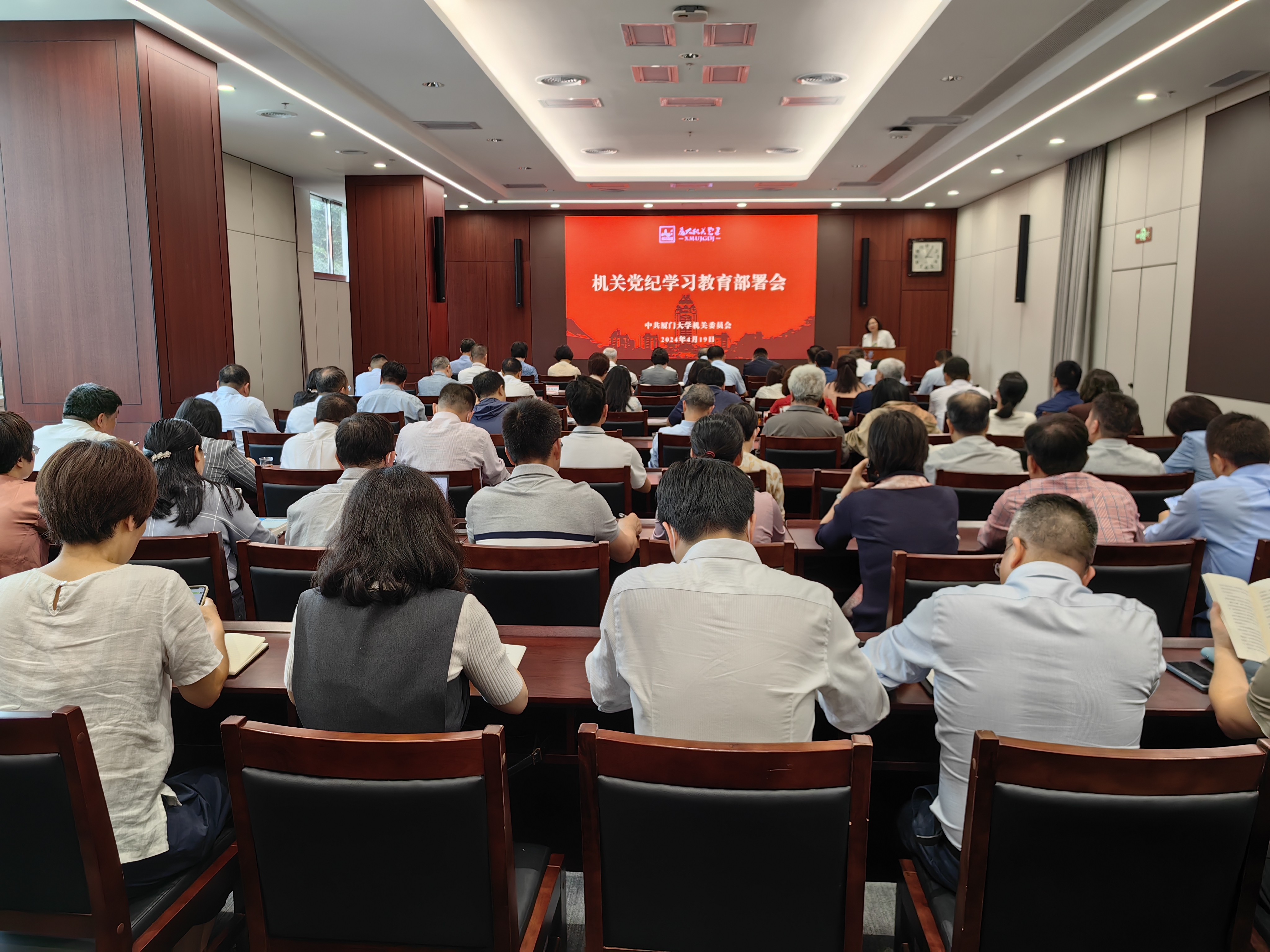 4月19日,机关党委在颂恩楼220报告厅召开党纪学习教育部署会。机关党委书记陈雪玲主持会议并作工作部署。机关党委委员、机关处级党员领导干部、机关党支部书记参加会议。