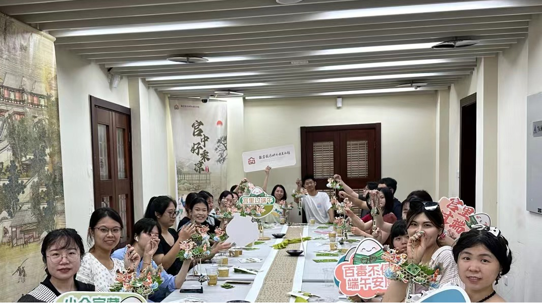 最后,机关青年干部们通过文化小课堂和手工实践活动,亲身体验和深入了解端午节的民俗文化知识。大家从故宫博物院馆藏的徐扬绘《端阳故事图册》出发,了解古人如何“过端午”,并沉浸式体验了“斗百草”“系彩丝”“悬艾人”等端午传统民俗,亲手制作“艾草门挂”。形式有趣的课堂调动了现场氛围,大家还围绕端午文化知识展开了热烈的交流和讨论。