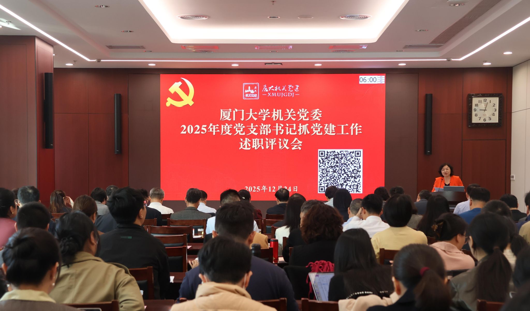 12月24日,厦门大学机关党委2025年度党支部书记抓党建工作述职评议会在颂恩楼220报告厅召开。校党委常委、宣传部/教师工作部部长高和荣出席会议。会议由机关党委书记陈雪玲主持。