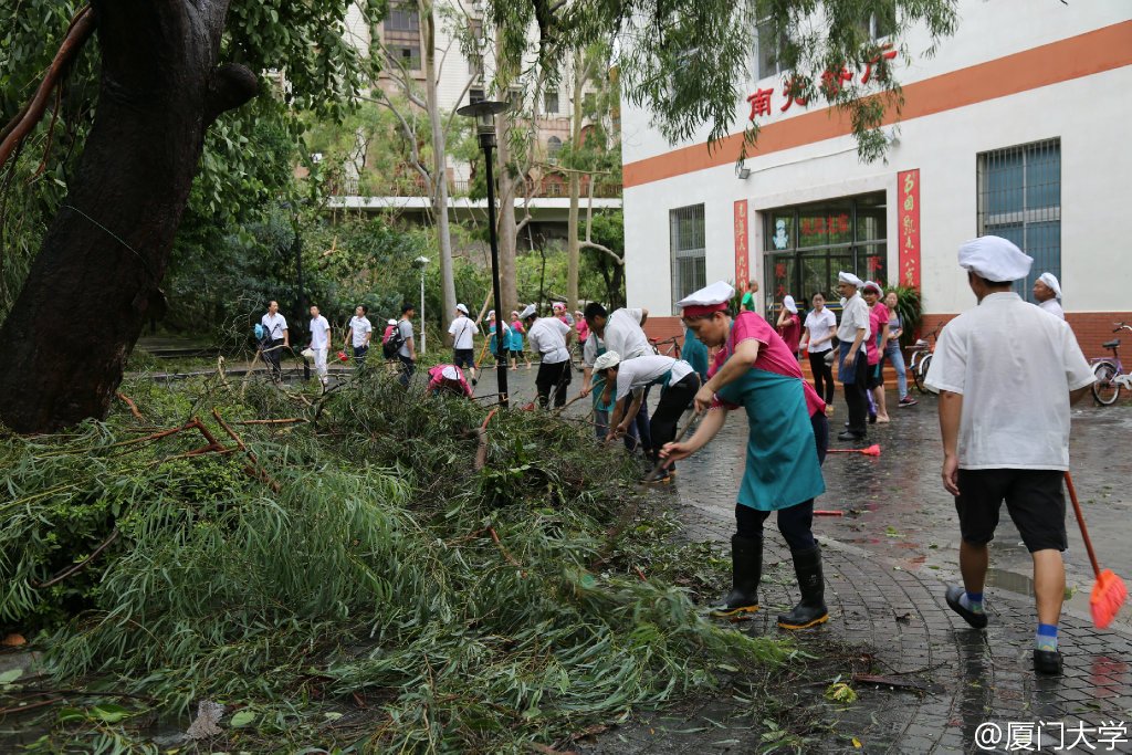 风小了,雨小了,道路基本恢复通畅了,水电抢通了,但是抢险救灾仍在紧张进行中,不为别的,只为了厦大人心中的那份坚守,为了一个更美的厦大校园。
