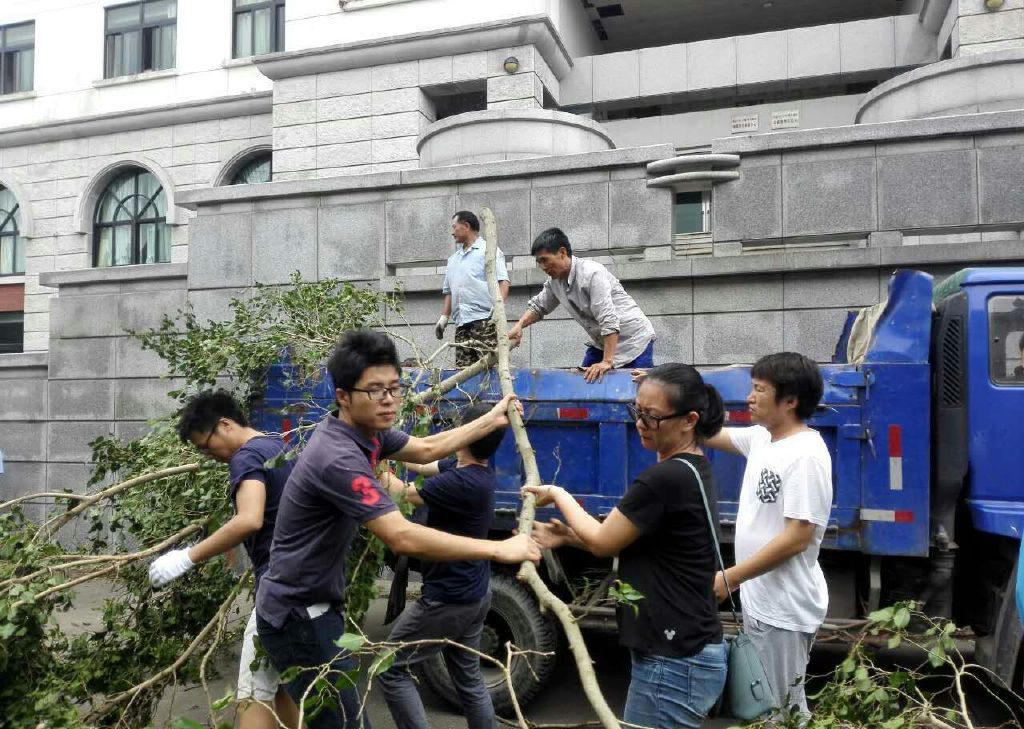 15日上午,机关党委和校学生处、团委分别组织了师生灾后重建突击队,在微信群发出号召后,不断有人要求加入,大家一起帮助后勤部门清扫路面,保障道路的畅通。