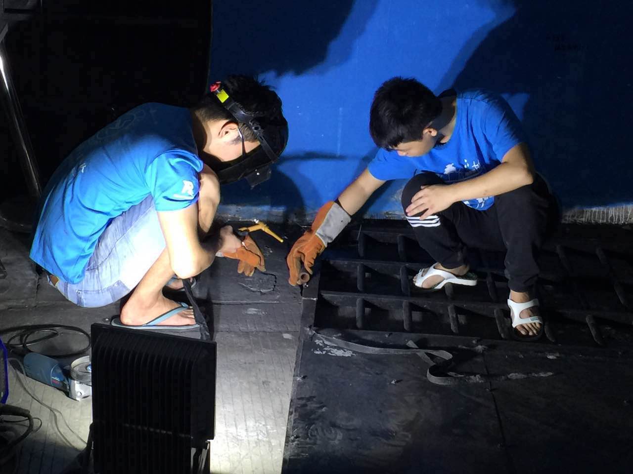 15日早7点,位于芙蓉隧道的机器人训练基地一侧铁门被吹至隧道路中央。队长高张文龙和其他六七名成员发现后,将铁门搬至门边,同时报备学院和学校资产处。与此同时,他们仔细查看损坏之处,发现铁门焊接出现问题。在平时的训练中,他们也熟练掌握了焊接技术,于是他们决定采取“自救”方式。回基地拿出氩弧焊接机,历时将近四个小时,成功让铁门上墙。同时,他们还在门前摆放警示牌,提醒过路同学。