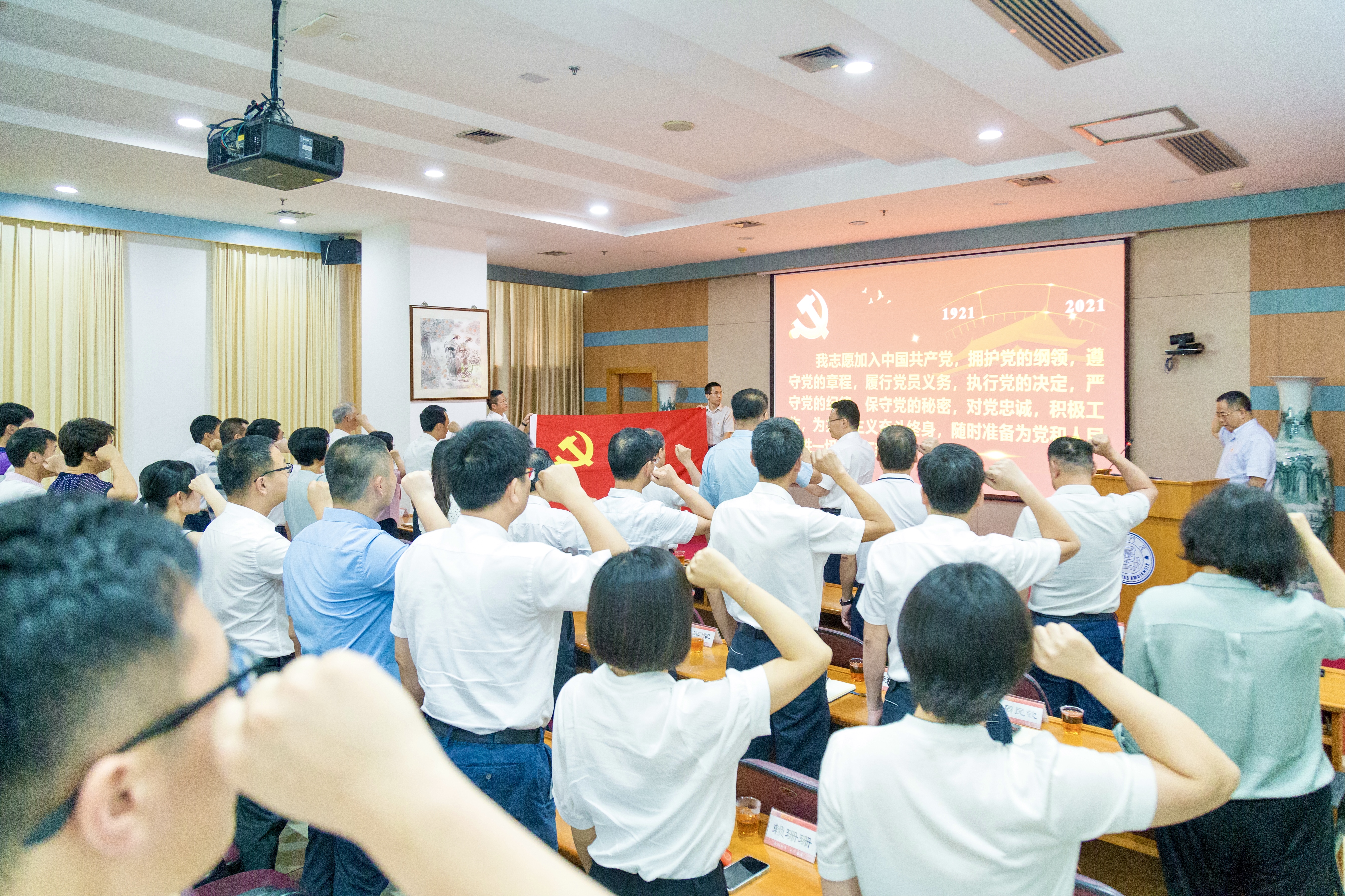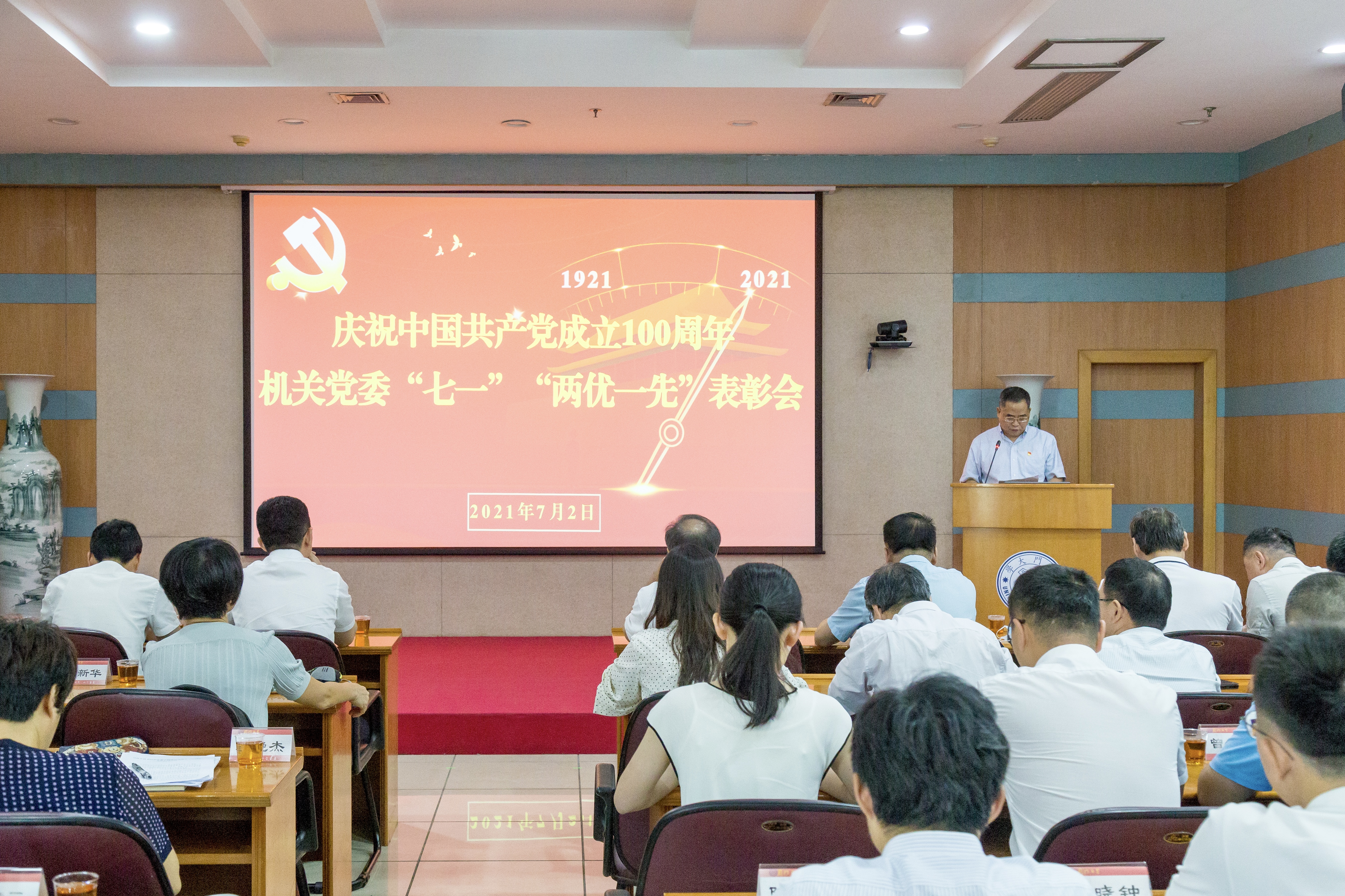 7月2日下午,机关党委庆祝中国共产党成立100周年暨“七一”“两优一先”表彰会在颂恩楼220报告厅隆重举行。会议学习习近平总书记“七一”重要讲话精神,表彰一批优秀个人和先进党支部,激励机关党支部、广大党员干部继往开来、锐意进取,始终以永不懈怠的精神状态和一往无前的奋斗姿态,奋进新征程,建功新百年。机关党委委员,机关各党支部书记、支部委员代表,受表彰的先进基层党组织和优秀个人以及新发展的党员参会。表彰会由机关党委书记王炳华主持。