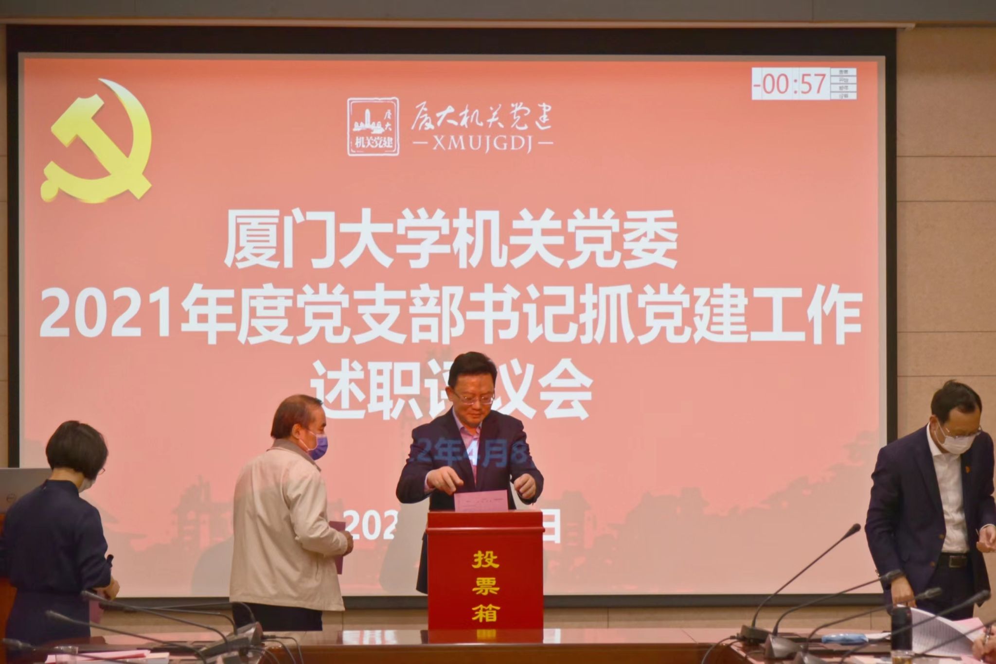 会上,研究生院党支部书记方颖、学校办公室第二党支部书记马进龙、学生工作部第一党支部书记李峰、政策研究室/发展规划办公室党支部书记黄新华、离退休工作部党支部书记曾坤瑜、保卫部党支部书记徐跃进、人才办/人事处党支部书记李军、考试中心党支部书记蔡郑伟、国际合作与交流处党支部书记蔡舜、资产与后勤事务管理处在职教职工党支部书记苏清伟、国内合作办公室党支部书记林奋强、漳州校区办公室保卫办公室联合党支部书记王智兰、翔安校区办公室党支部书记薛志平、翔安校区保卫办公室党支部书记陶元升、校友总会秘书处教育发展基金会秘书处联合党支部书记曾国斌、组织部统战部联合党支部书记孙理等16位同志进行了现场述职,其他党支部书记作书面述职。与会人员对现场述职和书面述职情况分别作出评议。