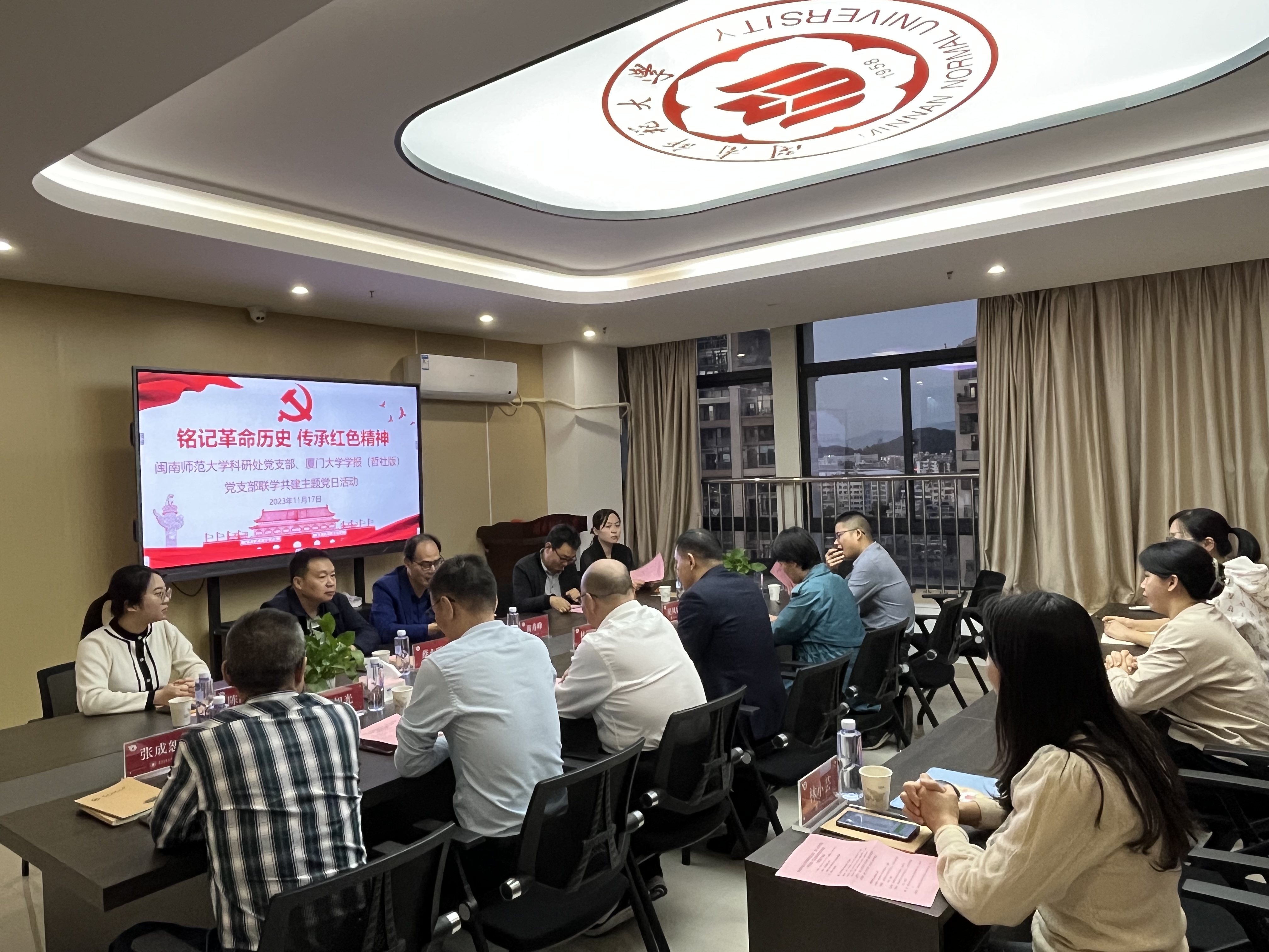 随后,党员们前往闽南师范大学开展共建座谈活动。座谈会上,大家纷纷分享了在芝山红楼和中共福建临时省委旧址现场学习的感受和体会,并围绕“立足岗位实际 弘扬革命精神”主题进行了党建和业务工作方面的交流和讨论,现场氛围热烈,干货满满。