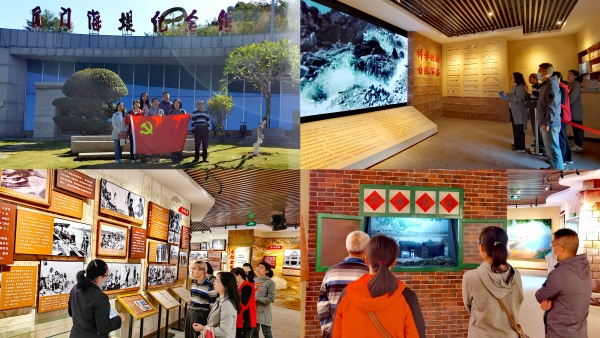 走进厦门海堤纪念馆,两单位党员干部们首先通过纪录短片回顾了当年海堤建设的场景,在一幕幕真实而热血的影像记录中感受上世纪50年代的厦门人团结奉献、移山填海的壮阔画面。随后在讲解员引导下,党员干部们一行依次参观了历史考卷、志起宏图、换了人间、永恒丰碑展厅,对厦门海堤建设的历史与意义有了深入系统的了解。中华人民共和国建立初期,时任厦门市市长梁灵光拜会陈嘉庚先生,提出在高崎至集美之间“抛石为堤”的设想,获得中央拨款1323万元,为打破昔日鹭岛的交通限制、修建鹰厦铁路,实现厦门经济复苏与各项事业发展打开了新局面。1953年6月正式动工后,近万人的建设大军奋战于山海之间,在没有经验参考的情况下边施工边探索,自强不息、增产节约,历时2年3个月筑起了全长2212米的海堤,并结余375万元,在厦门人心中树立起一座永恒的精神丰碑。