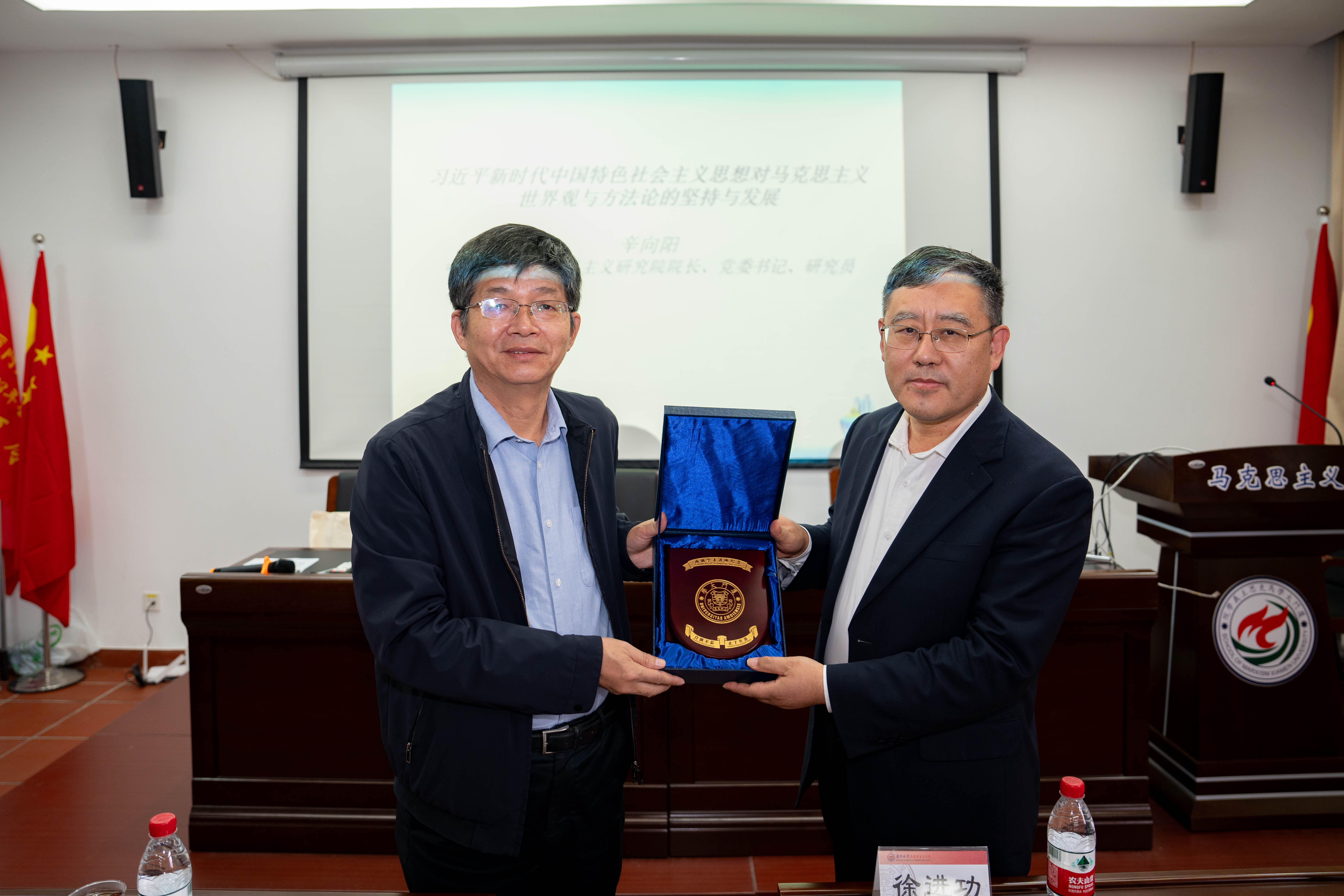 讲座前,厦门大学党委副书记、马克思主义学院院长徐进功教授为辛向阳颁授“南强学术讲座”纪念牌。