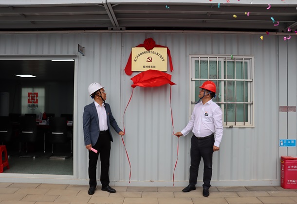 在深入学习贯彻党的二十大精神,落实学校第十二次党代会重要部署的关键时刻,为更好地服务学校高质量、内涵式发展,扎实推进翔安校区博士后公寓项目建设,经基建处与承建单位福建磊鑫集团有限公司协商,福建磊鑫集团党委成立项目临时党支部,并与基建处党支部进行共建。12月15日下午,厦门大学翔安校区博士后公寓工程临时党支部揭牌暨支部共建仪式在施工项目部举行,仪式由磊鑫集团党委副书记彭流枝主持,基建处、磊鑫集团有限公司、厦门大学建筑设计研究院有限公司相关人员出席。
