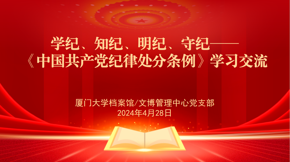 为深入贯彻落实习近平总书记关于党纪学习教育的重要讲话和重要指示精神,扎实开展党纪学习教育。4月28日上午,厦门大学档案馆/文博管理中心党支部召开《中国共产党纪律处分条例》(以下简称《条例》)学习交流会,支部全体党员参会。