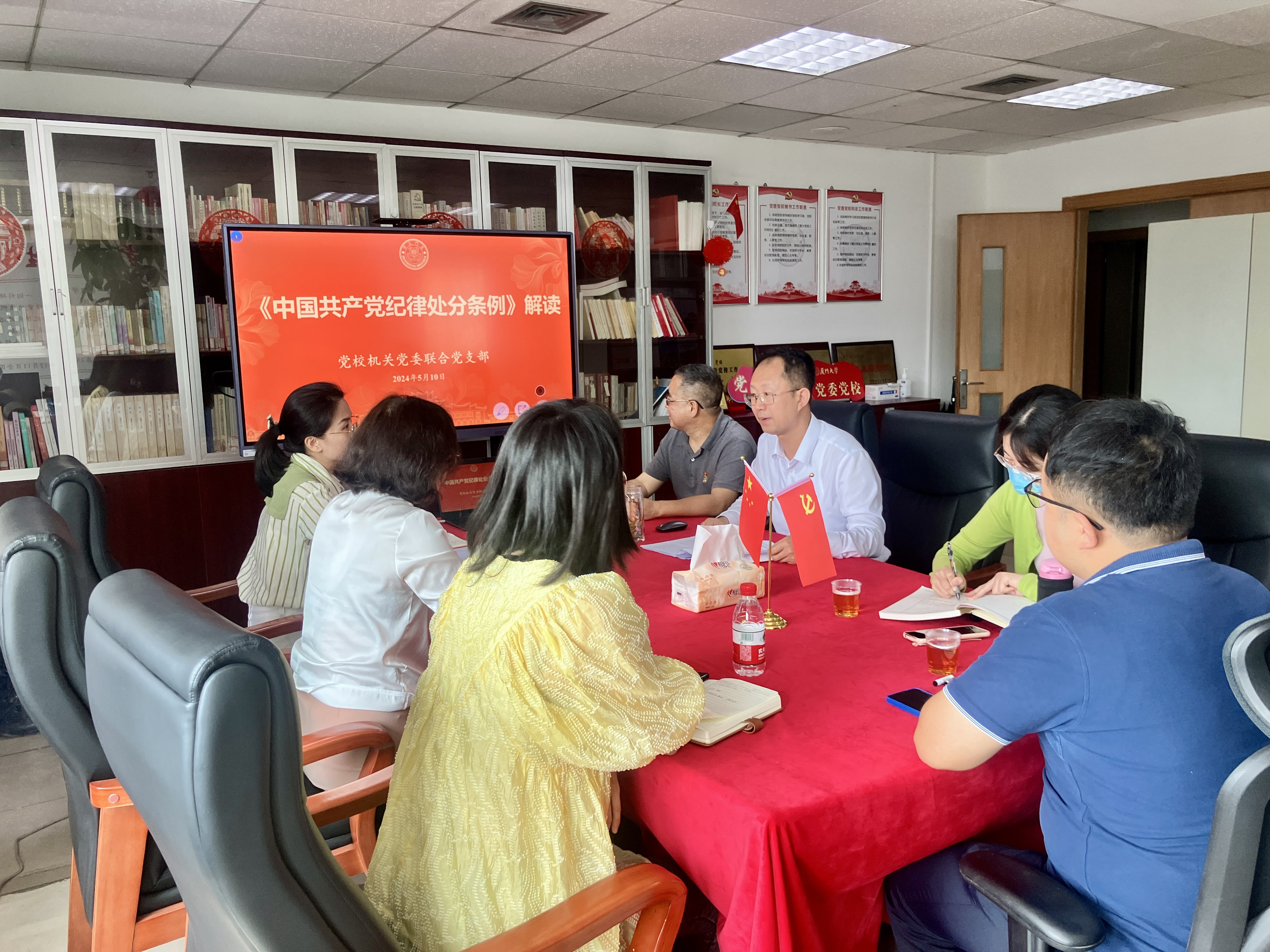 为深入贯彻落实习近平总书记关于党纪学习教育的重要讲话重要指示批示精神,扎实开展党纪学习教育,5月10日上午,党校机关党委联合党支部开展《中国共产党纪律处分条例》(以下简称《条例》)集中学习。会议由党支部书记张艳涛主持。