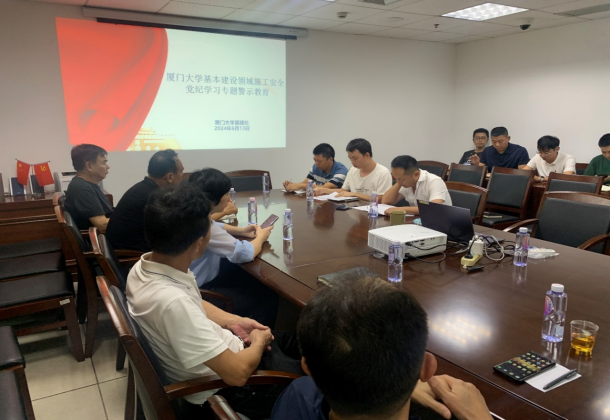 为进一步加强党纪学习,提升施工质量安全意识,6月13日下午,基建处开展厦门大学基本建设领域党纪学习及施工质量安全专题警示教育,基建处全体人员以及所有建设项目参建单位负责人参加,包括厦门大学建筑设计研究院、基业衡信监理公司、中国建筑第五工程局有限公司、福建磊鑫集团、福建互助建筑工程有限公司等。