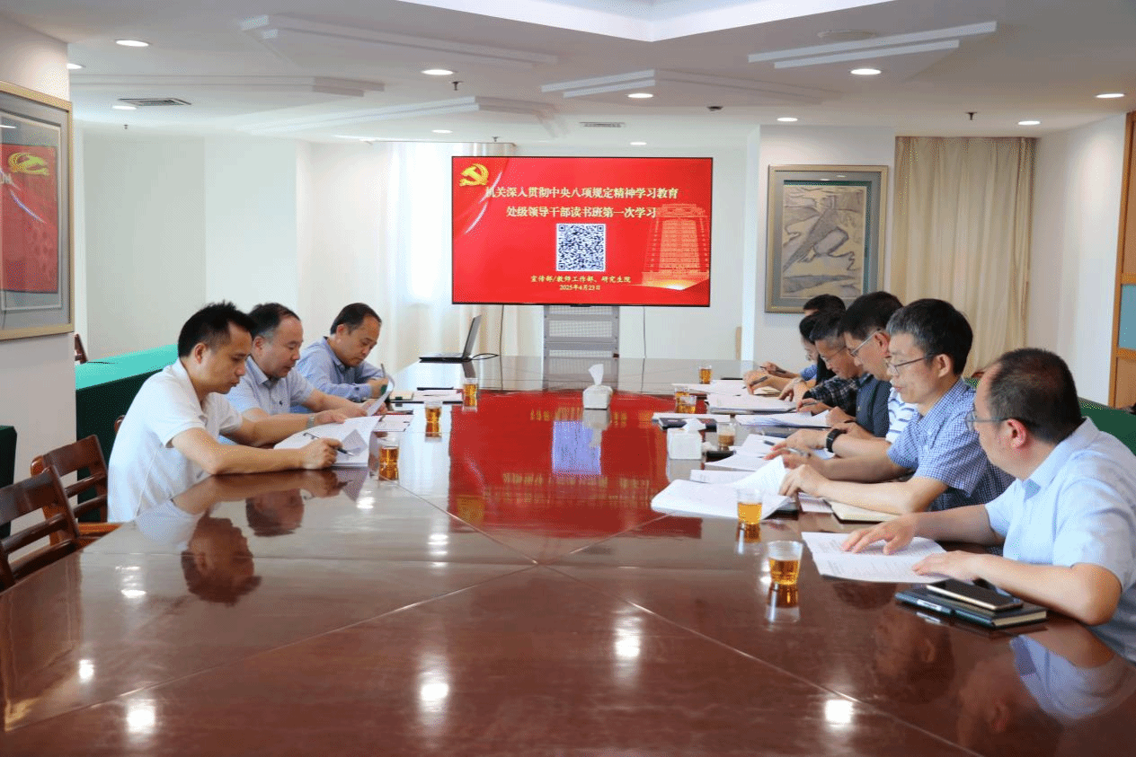 4月23日,宣传部/教师工作部、研究生院联合开展深入贯彻中央八项规定精神学习教育处级领导干部读书班学习暨交流研讨会。各单位处级领导干部参会。会议由校党委常委、宣传部/教师工作部部长、宣传部/教师工作部党支部书记高和荣主持。
