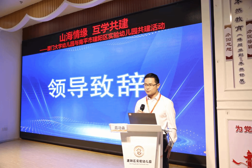 为深入贯彻落实福建省关于新时代山海协作推动区域协调发展的精神,推动区域学前教育协调发展,4月17日—18日,厦门大学幼儿园、南平市建阳区实验幼儿园举行“山海协作”共建活动。厦门大学关工委副主任梁卫中、机关关工委常务副主任王炳华、资产与后勤事务管理处副处长范功淼,建阳区副区长张华、教育局相关领导及两地幼儿园园长、骨干教师代表等参加活动。