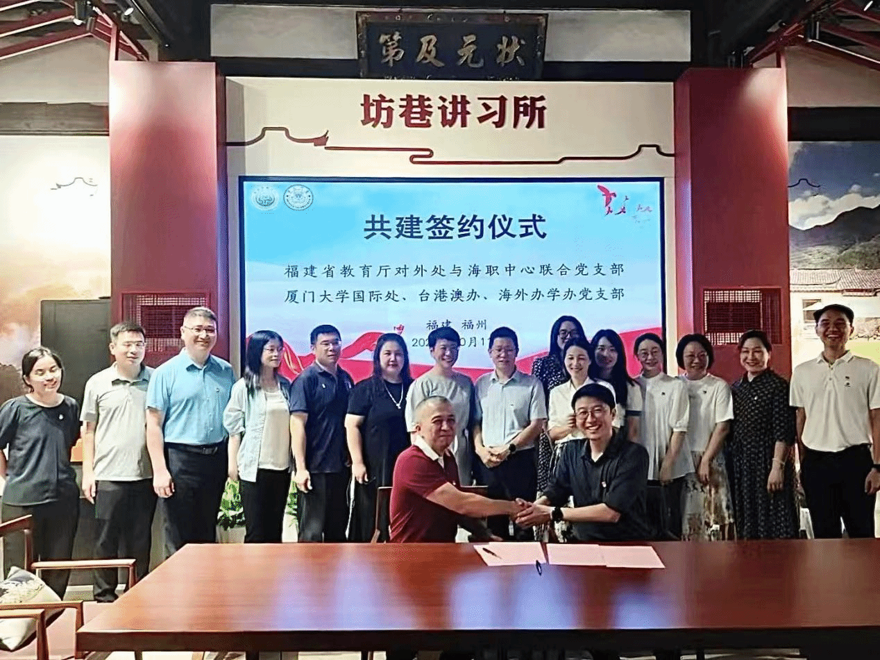 为深化党建经验交流、共促教育国际交流事业发展,10月11日,厦门大学国际处、台港澳办、海外办学办党支部(以下简称“厦大国际处党支部”)携手福建省教育厅对外合作处与海职中心联合党支部(以下简称“省教育厅对外处联合党支部”),共同举办“党建引领聚合力,互学互鉴促发展”支部共建交流活动,并邀请部分涉外办学专委会常务理事参与。