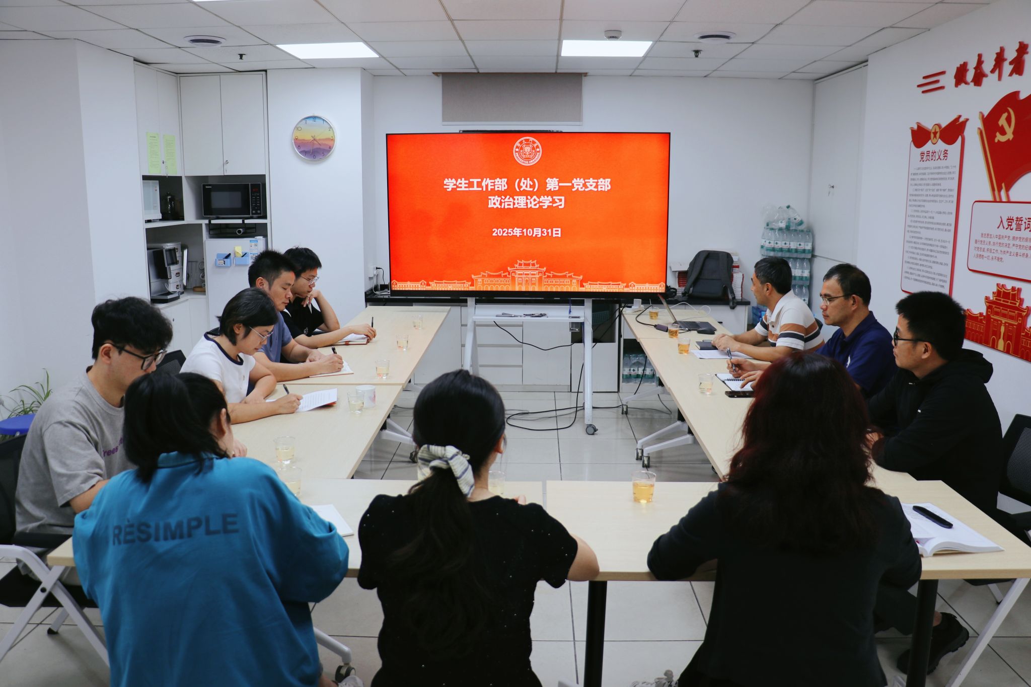 10月31日,学生工作部(处)第一党支部开展政治理论学习,集体学习党的二十届四中全会精神,并开展2025年师生党员第三次集中培训交流研讨。