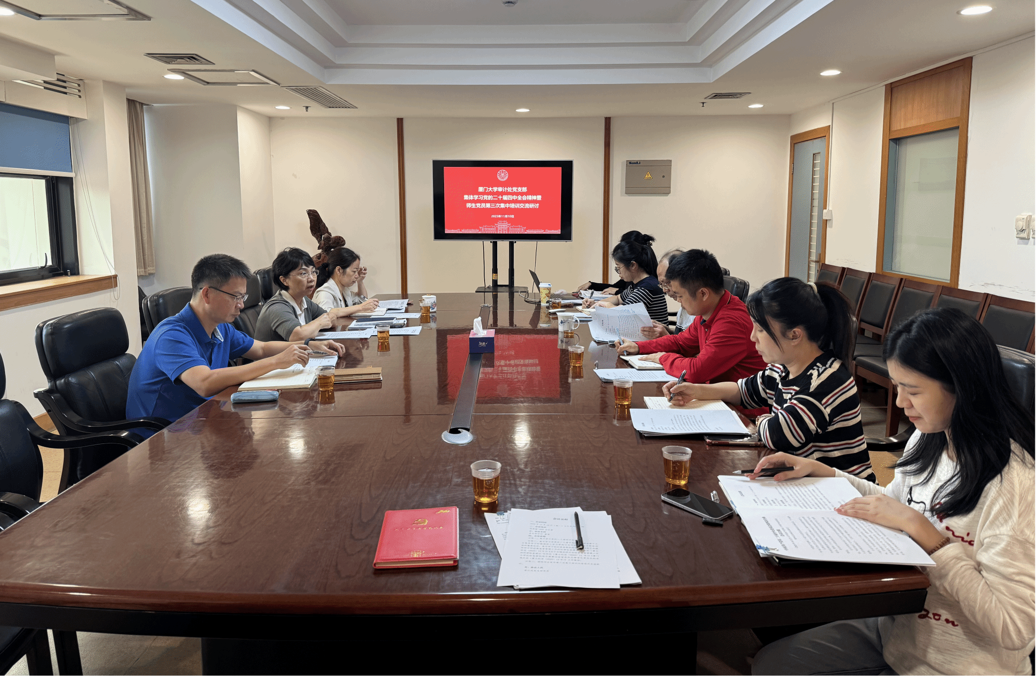 随后,大家集中学习李希在二十届中央纪委常委会第十七次集体学习时强调的深入学习贯彻习近平总书记关于科技创新的重要论述,深入研判科研领域管理要求,并结合校纪检监察机构近期出具出台的《关于加强科研外协经费监督管理工作的纪律检查建议》《厦门大学纪检监察机构开展整治监督具体化精准化常态化的实施办法》等文件进行学习。廖青强调,全体党员必须提高认识,协同相关部门持续强化对“三集”领域的监督力度,针对“两重”“两新”项目、科研经费“高效益”“严监管”的特点,务必要牢固树立监督意识,结合审计项目实施,进一步提升审计在促进规范管理、完善治理方面的能力和水平。