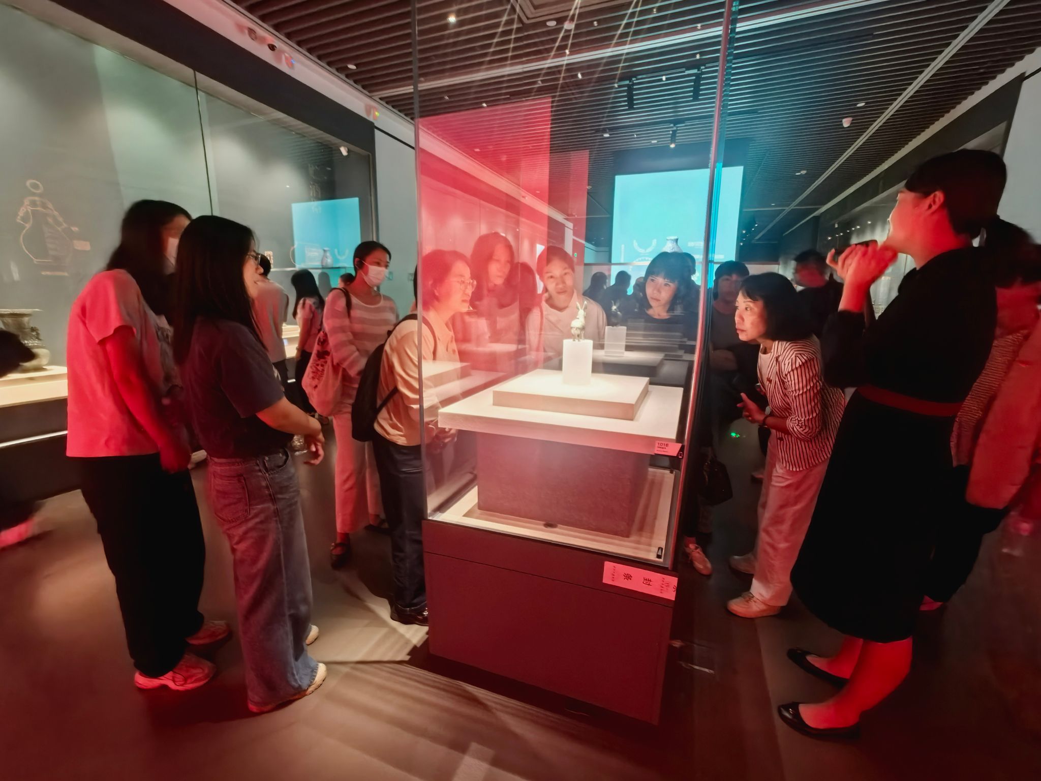 支部一行首先来到“国宝归来——圆明园兽首暨海外回流文物特展”。此次特展汇集了商周青铜器、北朝石刻佛像以及圆明园十二生肖兽首中的牛首、虎首、猴首、猪首等7件珍贵兽首。展柜前,大家凝神驻足,欣赏着造型精妙、工艺精湛的国之瑰宝,认真聆听讲解员生动讲述它们流散海外到辗转归国之路。文运与国运相牵,文脉同国脉相连。透过一件件承载民族记忆的文物,大家不仅感受到中华民族深厚的历史积淀与艺术底蕴,更深刻体悟到中华民族曾经的苦难与挫折,以及复兴道路上的不屈力量。