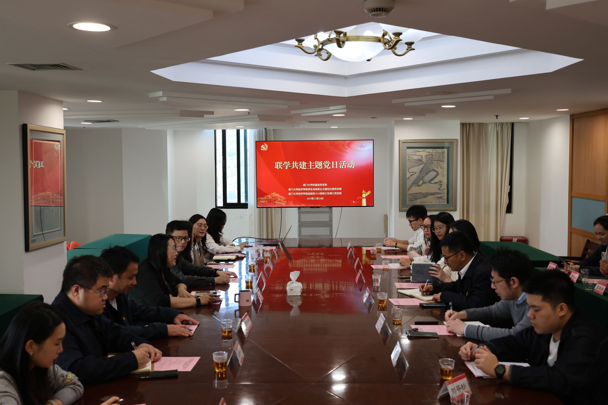 为深入学习贯彻党的二十届四中全会精神,2025年11月26日下午,厦门大学纪监巡党支部与经济学院学生党支部开展联学共建活动,围绕党的二十届四中全会精神开展专题学习与交流。校党委副书记、纪委书记、监察专员黄身勇以普通党员身份参加活动。