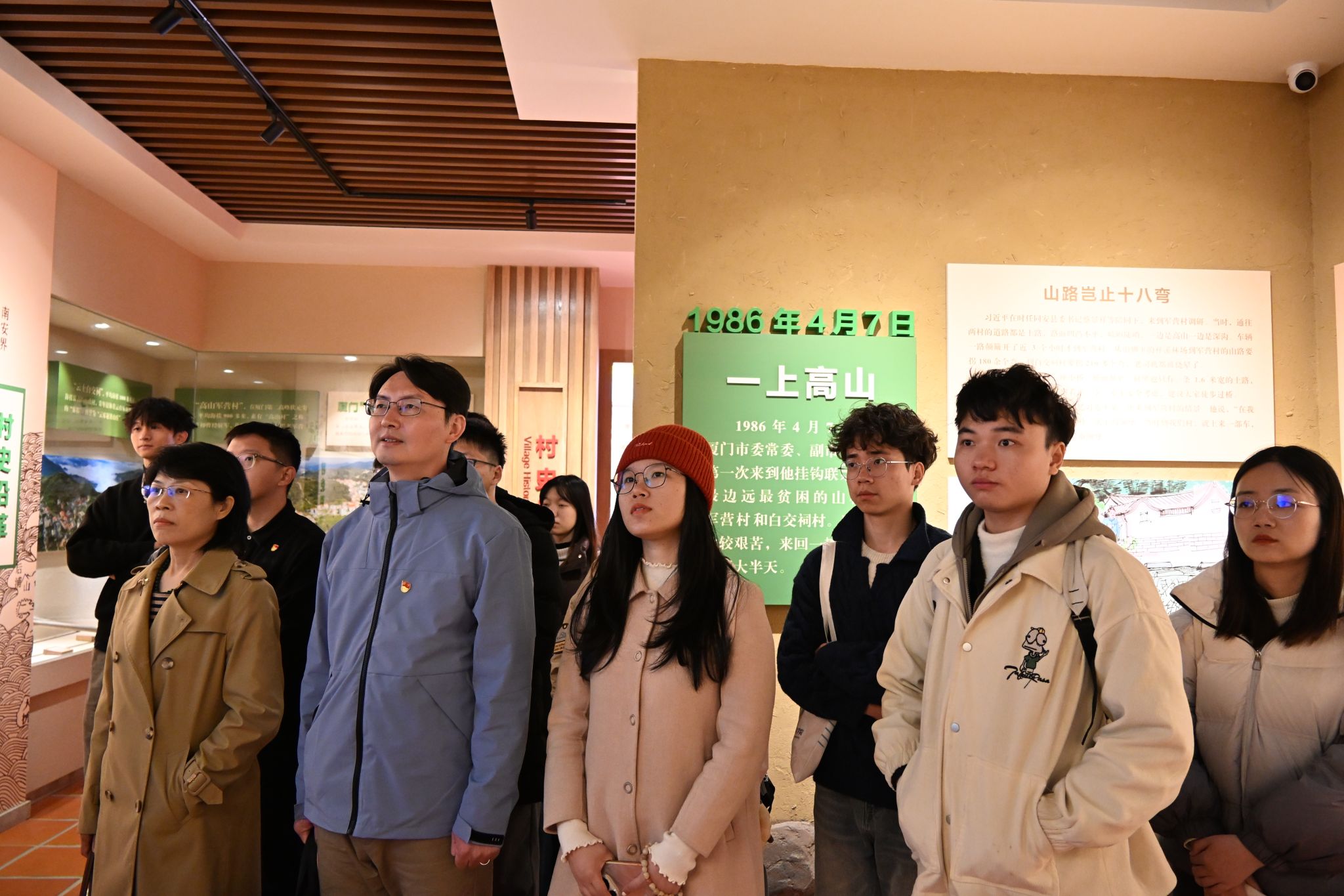师生党员们首先走进高山党校初心使命馆。一行人通过馆内的珍贵史料、实景复原等详细了解厦门特区初创时期的探索实践,感悟习近平总书记与厦门特区的深厚情缘,体会“扶贫扶志”的深刻内涵。