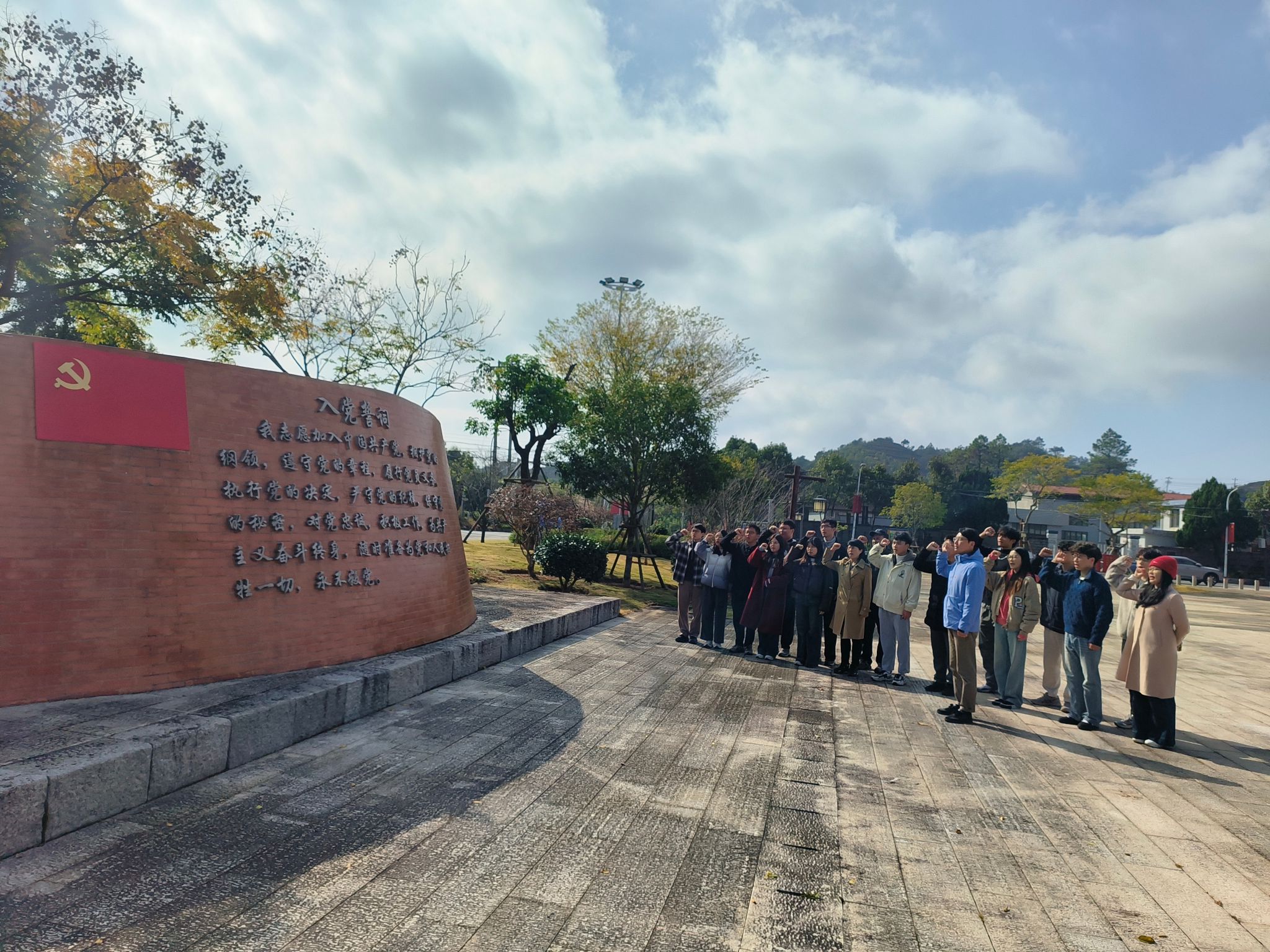 在高山党校初心使命馆前,党员们重温入党誓词。铿锵有力的誓言回荡在高山村落间,彰显了同志们矢志不渝跟党走、立足岗位勇担当的坚定决心。