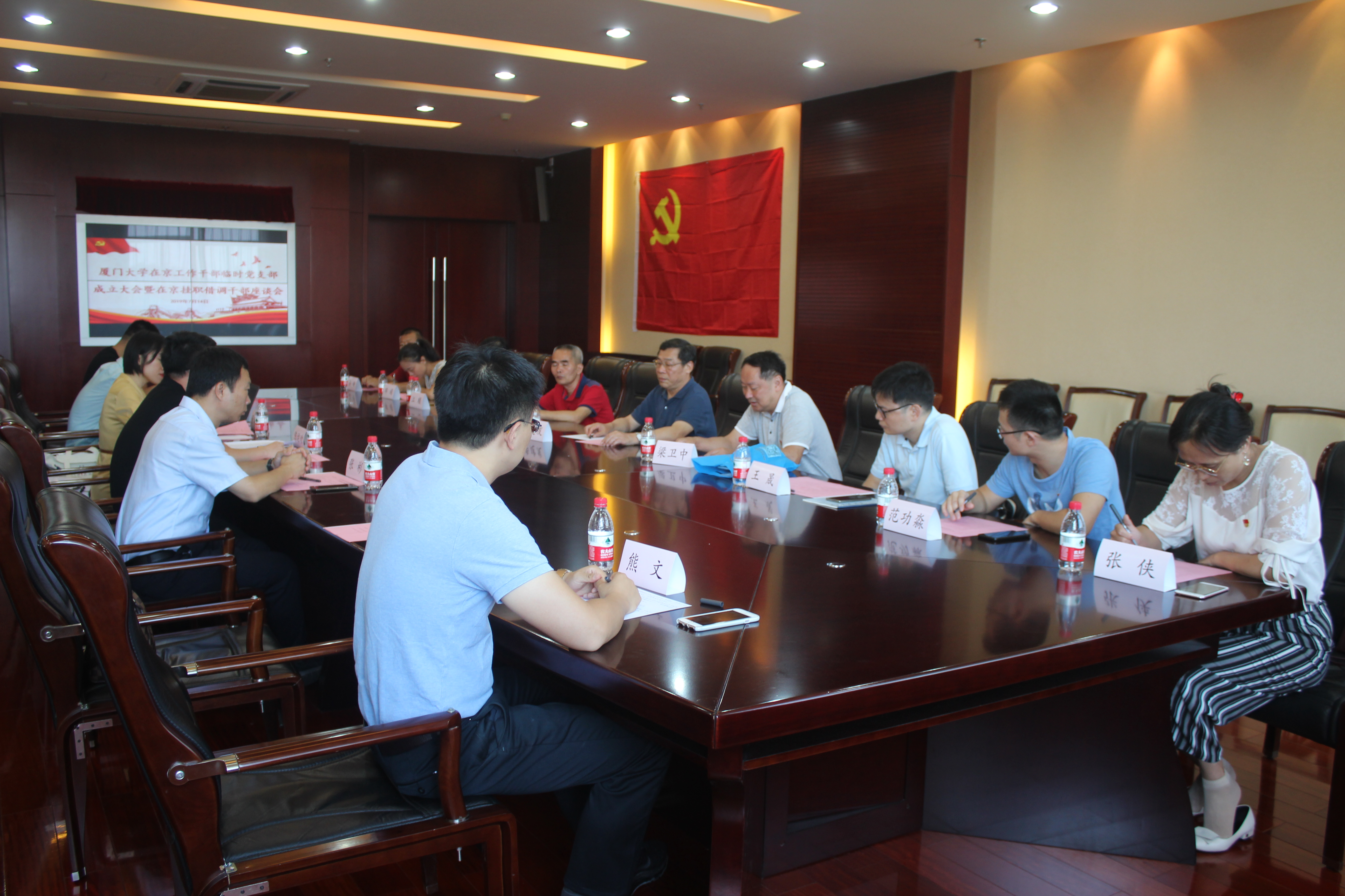 7月14日下午,厦门大学在京工作干部临时党支部成立大会暨在京挂职借调干部座谈会在首都体育学院举行。校党委副书记、副校长李建发,我校在京挂职借调干部和对外联络办工作人员共17人参加会议,会议由校机关党委书记梁卫中主持。