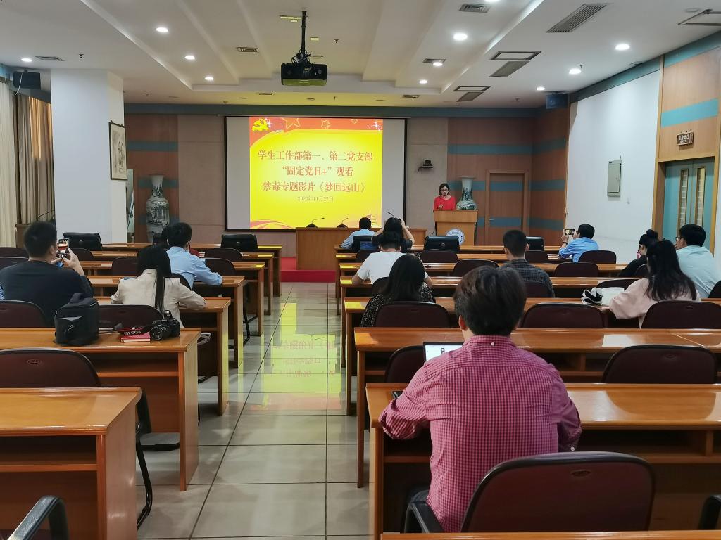 为进一步提升支部党员识毒、防毒、拒毒的能力和意识,根据中央、省委部署和学校通知要求,11月27日下午,学生工作部(处)第一、第二党支部于颂恩楼220报告厅联合开展“固定党日+”活动,集中观看禁毒专题影片《梦回远山》。