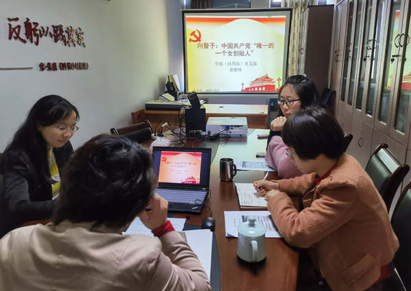 为学习贯彻习近平总书记在党史学习教育动员大会上的重要讲话精神,指导支部党员认真开展本年度党史学习教育,学报(自然版)党支部借庆祝“国际妇女节”之机,结合本支部全数女性党员的特点,于3月10日上午开展集中学习讨论,支部书记曹雅坤同志讲授“党史中的巾帼楷模”主题党课。