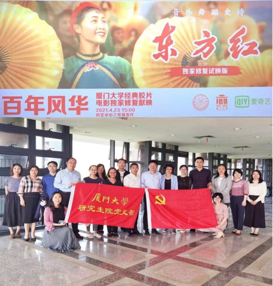在伟大的中国共产党100年华诞之际,为进一步丰富党史学习教育形式,不断提高党员党性观念,研究生院党支部于4月23日组织研究生院全体工作人员在厦门大学科学艺术中心观看了大型音乐舞蹈史诗《东方红》4k修复版影片。