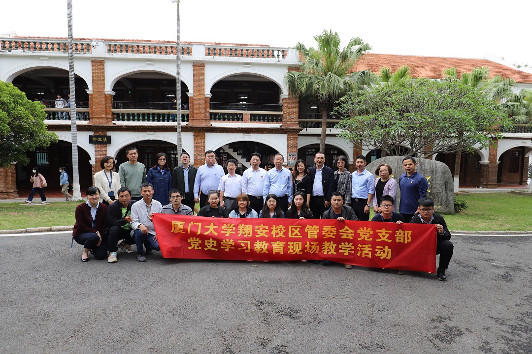 为扎实开展党史学习教育,庆祝厦门大学百年华诞,进一步挖掘校史中蕴含的红色文化资源,提振奋进一流征程的精气神,4月25日下午,翔安校区管委会党支部全体党员、管委会各单位负责人前往厦门大学开办故地集美大学即温楼,陈嘉庚纪念馆,开展“弘扬嘉庚精神,奋进一流征程”“固定党日+”活动。