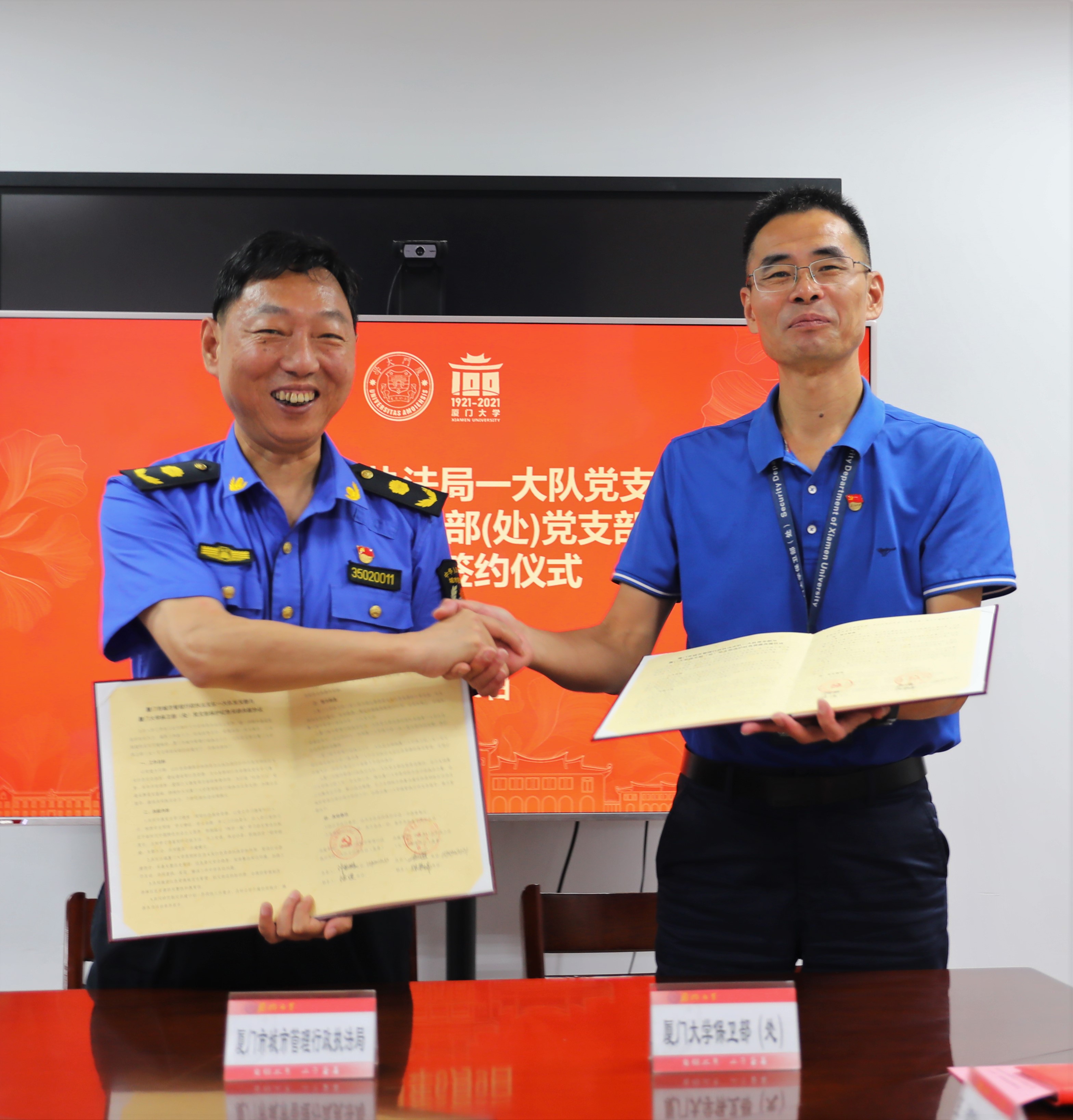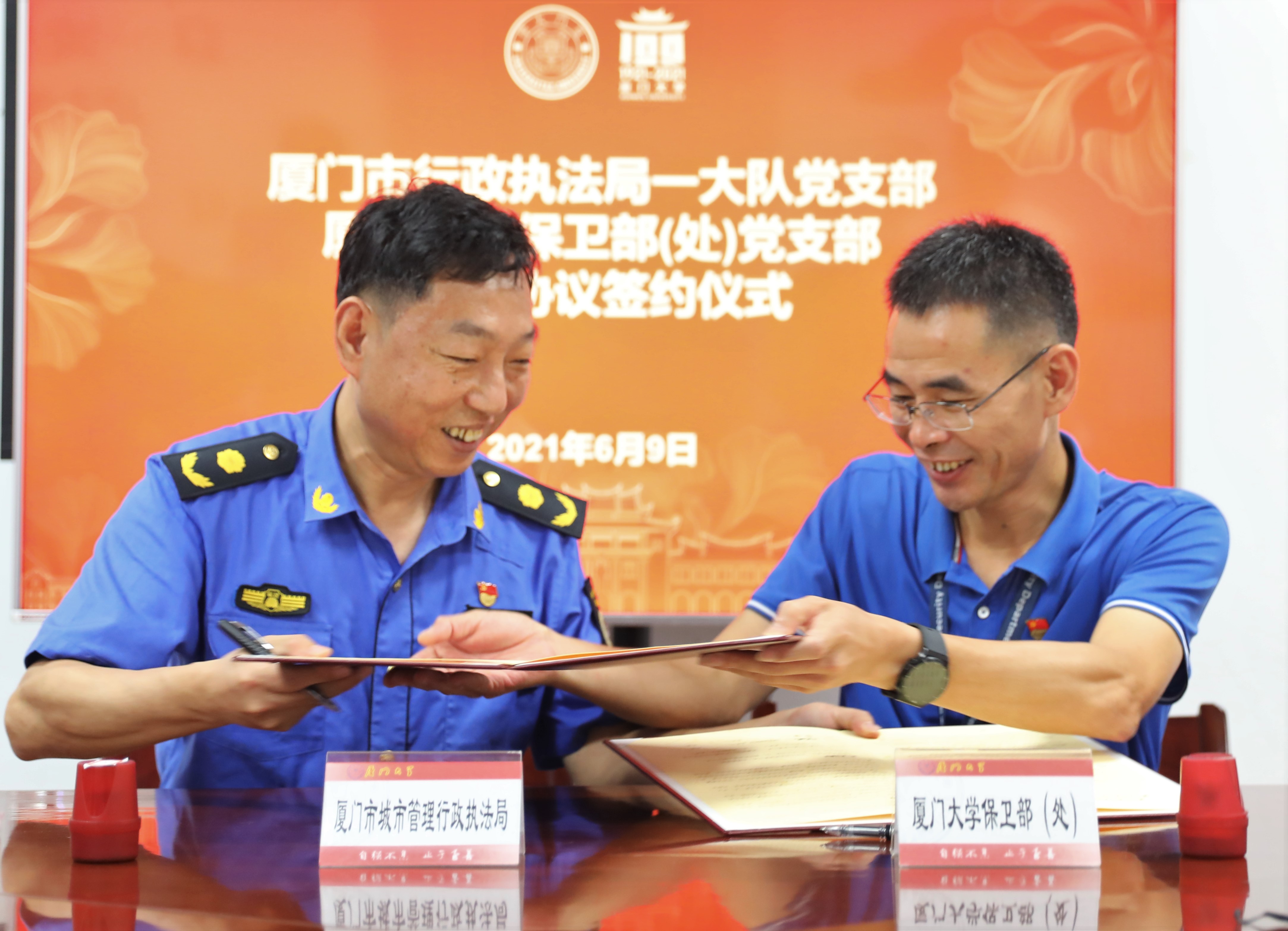 此次支部共建活动,是保卫部(处)党支部与市执法支队一大队党支部积极探索城市管理和校区治理新模式的一次尝试,双方联手将“红色资源保护和利用”这根主线,与思明校区行政执法业务相结合,形成执法合力,努力打造优势互补、资源共享、双向服务、互助联建的良好党建格局。