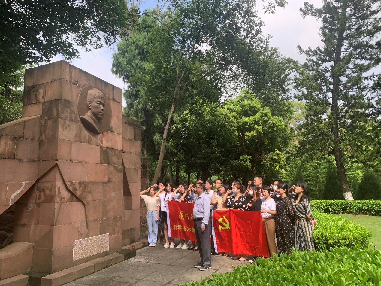 为庆祝我党百年华诞,激励广大党员坚定理想信念,牢记初心与使命,增强党支部的凝聚力和战斗力,2021年6月30日上午,科技处党支部开展“重温入党誓词 践行初心使命”主题党日活动,支部全体党员在罗扬才纪念雕像前重温入党誓词。