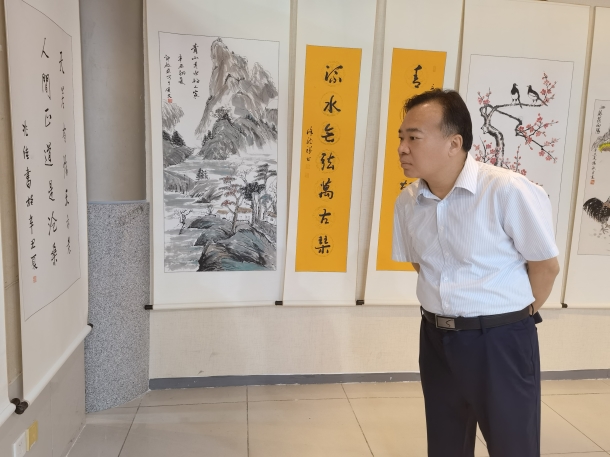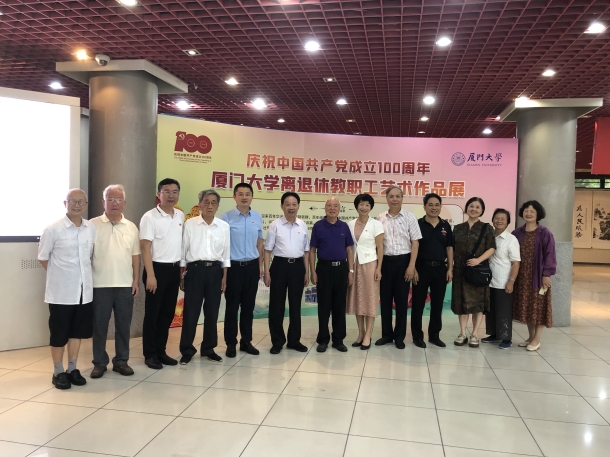 6月24日上午,由离退休工作部主办,厦大书画研究会、厦大老年大学协办的“庆祝中国共产党成立100周年”厦门大学离退休教职工艺术作品展在自钦楼一楼展厅开展。校党委书记张彦到现场参观指导,对此次艺术作品展给予肯定。学校老领导卞守耆,校党委原副书记、老年大学校长陈国凤,校团委书记曾铮,公共事务学院党委书记宋友良,离退休工作部部长曾坤瑜、副部长周一钦,书画研究会会长蒋东明,老年大学副校长曾安,以及书画研究会、老年大学的老同志代表到现场观展。