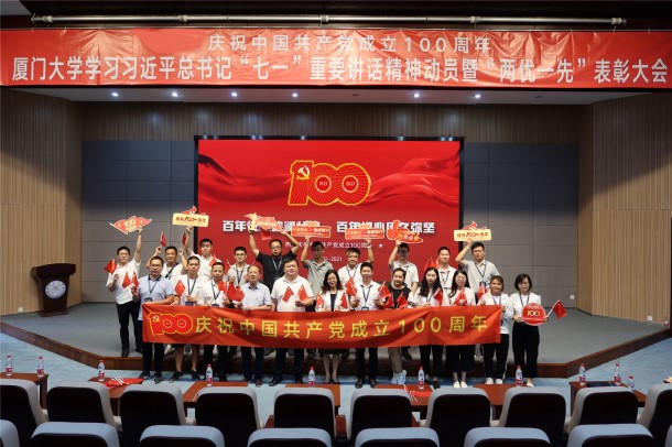 7月1日上午8时,庆祝中国共产党成立100周年大会在北京天安门广场隆重举行。中共中央总书记、国家主席、中央军委主席习近平发表重要讲话。翔安校区管委会党支部在德旺图书馆二号报告厅通过电视直播认真收看庆祝大会,学习领会习近平总书记在庆祝大会上的重要讲话精神,共同庆祝党的百年华诞。