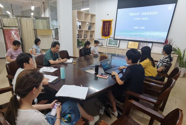 作为一所与中国共产党同龄的高校,厦门大学始终与党同心同向,烙下了鲜明的爱国底色和深厚的红色基因。在中国共产党成立100周年之际,为扎实推进党史学习教育向纵深发展,做到学出特色、学出实效,档案馆党支部把校史作为党史学习教育的鲜活教材。7月5日下午,档案馆党支部书记石慧霞为支部党员讲授《“英雄大学”的由来及启示(1949-1966)》专题党课。此次党课,档案馆支部邀请学校党史学习教育第六指导组副组长、离退休工作处周一钦副处长莅临指导。