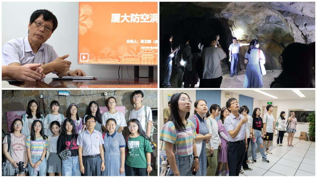 仪式结束后,保卫部陈安鹭老师以“厦大防空洞历史”为题为师生党员作专题党课,并带领大家进入防空洞和保卫部监控室进行实地参观考察。在陈老师的讲述中,大家重温了昔日炮火连天环境下厦大人“一手捧着书、一手扛着枪”的艰苦岁月,对“英雄大学”有了更深入的了解,对“四种精神”有了更深刻的感悟。大家纷纷表示,要用好所学知识,创作出优秀作品,把厦大防空洞的故事传播给全校师生,打造厦大新的党史校史学习教育基地。