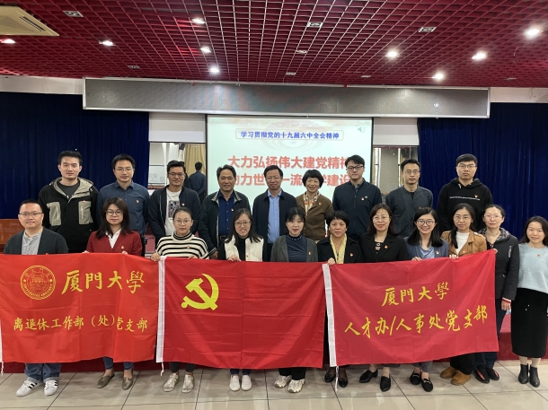 11月23日,离退休工作部(处)党支部与人才办/人事处党支部开展“联学共建”活动,在自钦楼二楼多功能厅举办学习党的十九届六中全会精神专题报告会。“银龄引航”老教授党史宣讲团成员、厦门市老教授协会常务副会长、马克思主义学院苏劲教授应邀作《大力弘扬伟大建党精神 助力世界一流大学建设》专题报告。离退休工作部副部长周一钦主持报告会。
