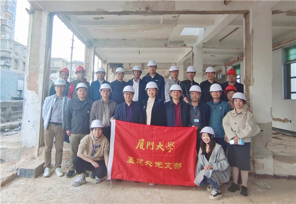 在工地现场,工人们正逐步拆除老旧装修层、砖墙等非承重构件,作为承重结构的梁柱清楚地展示在全体基建人眼中,混凝土构件的浇捣质量、钢筋的加工工艺、伸缩缝的节点构造……近百年前老一辈基建人们科学的施工技术与处理构造难题的建筑智慧直至今天依然值得我们研究和学习。大家针对项目的情况向项目组提出了建议,诸如屋面空间的利用、栏杆风貌的保留等。全体党员赞叹之余,纷纷表示要进一步发扬老一辈基建人的工匠精神,不断提高基建管理水平,将所知所想在实践中不断磨砺提升,为学校新百年事业发展以及“双一流”建设贡献自己的力量。