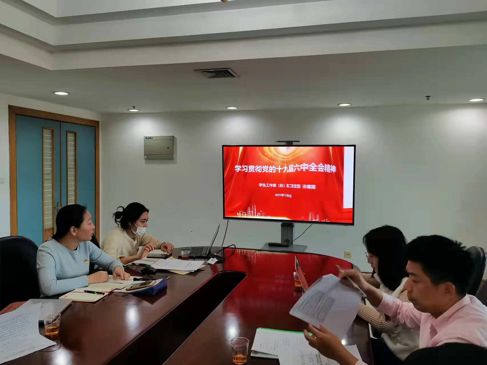 为深入学习贯彻党的十九届六中全会精神,强化政治理论学习要求,2021年12月9日下午,学生工作部(处)第二党支部在颂恩楼1605会议室组织支部党员共同学习十九届六中全会精神。