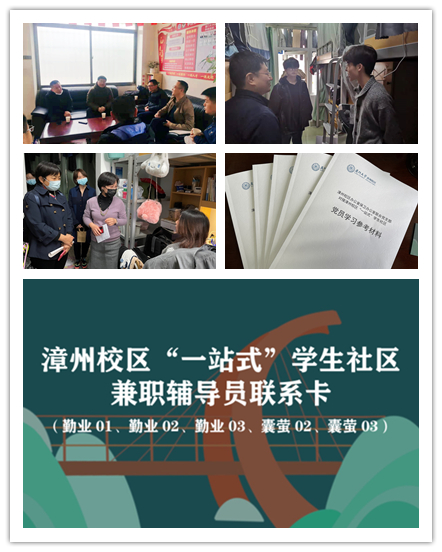 此外,2月21日下午,支部兼职辅导员与学校公寓办、资产处、后勤服务办,以及创意与创新学院相关负责人及经办人,走进学生园区,实地商议园区安保力量提升、园区规划、自助贩售机布置等事宜。3月7日,支部全体兼职辅导员结合新学期学生宿舍安全与卫生检查,与公寓办及学院专职辅导员一同走访学生宿舍,关心学生学习和生活和情况,发放联系卡,方便学生遇到问题联系“一站式”学生社区兼职辅导员。漳州校区管委会副主任杨旸、学生工作部副部长陈泗林、校区办主任王智兰、校区保卫办主任江顺、创意与创新学院党总支副书记邹江涛、学生公寓学生工作办公室秘书马向华等参加相关活动。