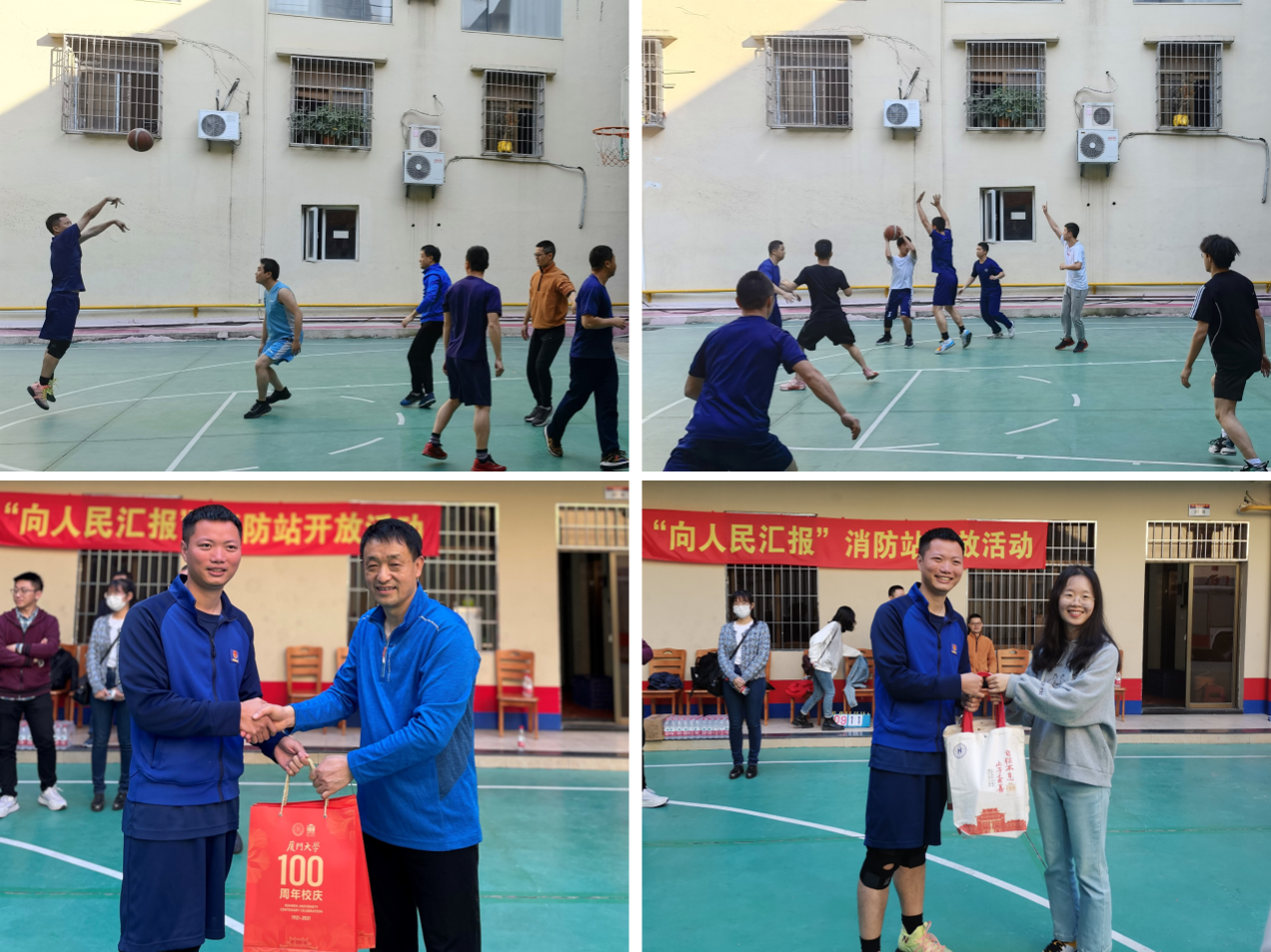 油盆中的熊熊烈火已经扑灭,但师生篮球队与消防战士篮球队心中的“火苗”才刚刚燃起。三个党支部纷纷派出三支篮球队,进行了“定点投篮”和“3V3”篮球比赛。此次比赛别开生面,实验室与设备管理处的教师党员们顽强拼搏,化学化工学院的学生党员们青春活力,消防队员们配合默契,最终,身为主场的消防队员们以良好的体力和优秀的配合赢得了比赛。