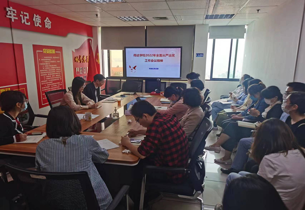 学习活动结束后,赖日泉同志还代表党支部传达了学校2022年全面从严治党工作会议精神,他强调全体党员及干部要深入学习会议有关精神,要强化责任担当,坚持常抓不懈,把严的主基调长期坚持下去,把严的原则贯穿到日常工作的方方面面,持续增强全面从严治党的紧迫感和责任感,扎实做好全面从严治党重点工作。