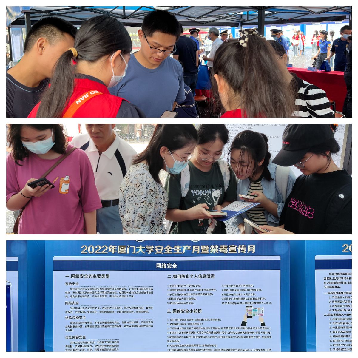 今年6月是第21个全国“安全生产月”。为深入贯彻落实习近平总书记关于安全生产的重要论述,推动安全专项整治三年行动巩固提升,根据《教育部办公厅关于开展2022年教育系统“安全生产月”活动的通知》,6月16日上午,厦门大学“安全生产月”暨禁毒宣传月活动启动仪式在三家村举行,校党委副书记徐进功出席活动仪式,保卫处处长徐跃进主持,仪式特邀厦门市禁毒办、厦门市思明区巡特警、大学路派出所、厦港消防救援站等单位领导出席,学校相关负责单位到现场开展安全宣传。