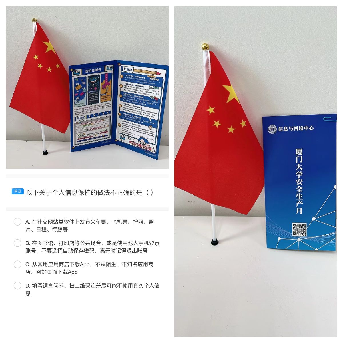 信息与网络中心以“增强师生网络安全意识,共建健康安全信息化校园”为主题,在现场开展了丰富多彩的宣传活动。包括:布置网络安全知识宣传展板、设置网络安全咨询台、发放钓鱼邮件及弱密码宣传册和开展线上答题赢好礼等。