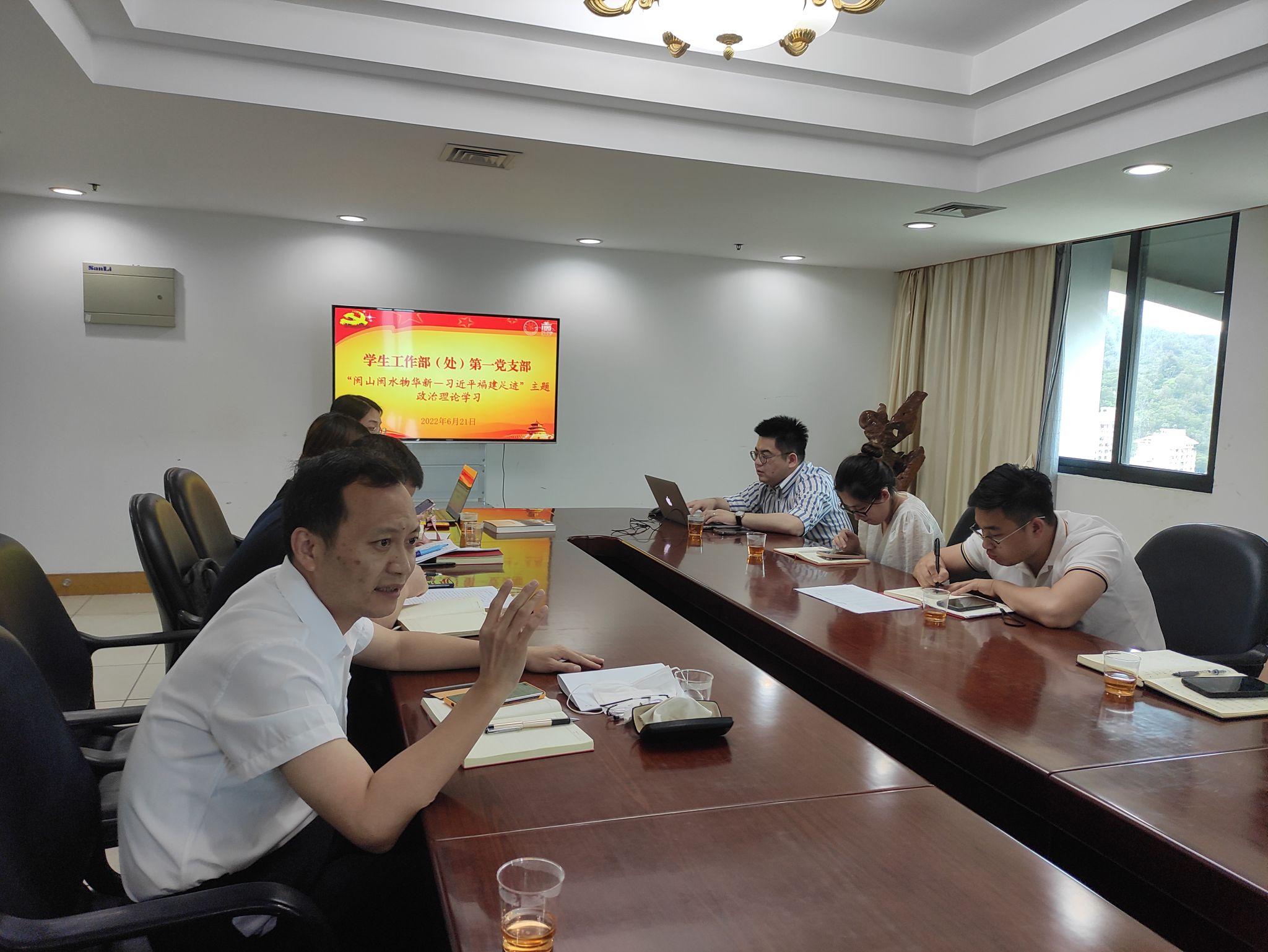 6月21日,学生工作部第一党支部于颂恩楼1605会议室开展“闽山闽水物华新——习近平福建足迹”主题政治理论学习活动。会议由支部书记、部长李峰主持。