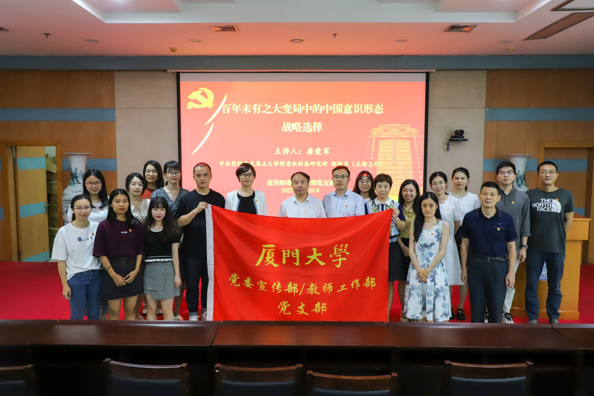 7月20日上午,中央党校马克思主义学院意识形态研究所副所长(主持工作)唐爱军教授应邀作题为《百年未有之大变局中的中国意识形态战略选择》的专题报告。宣传部/教师工作部党支部成员在颂恩楼220会议室进行集中学习。