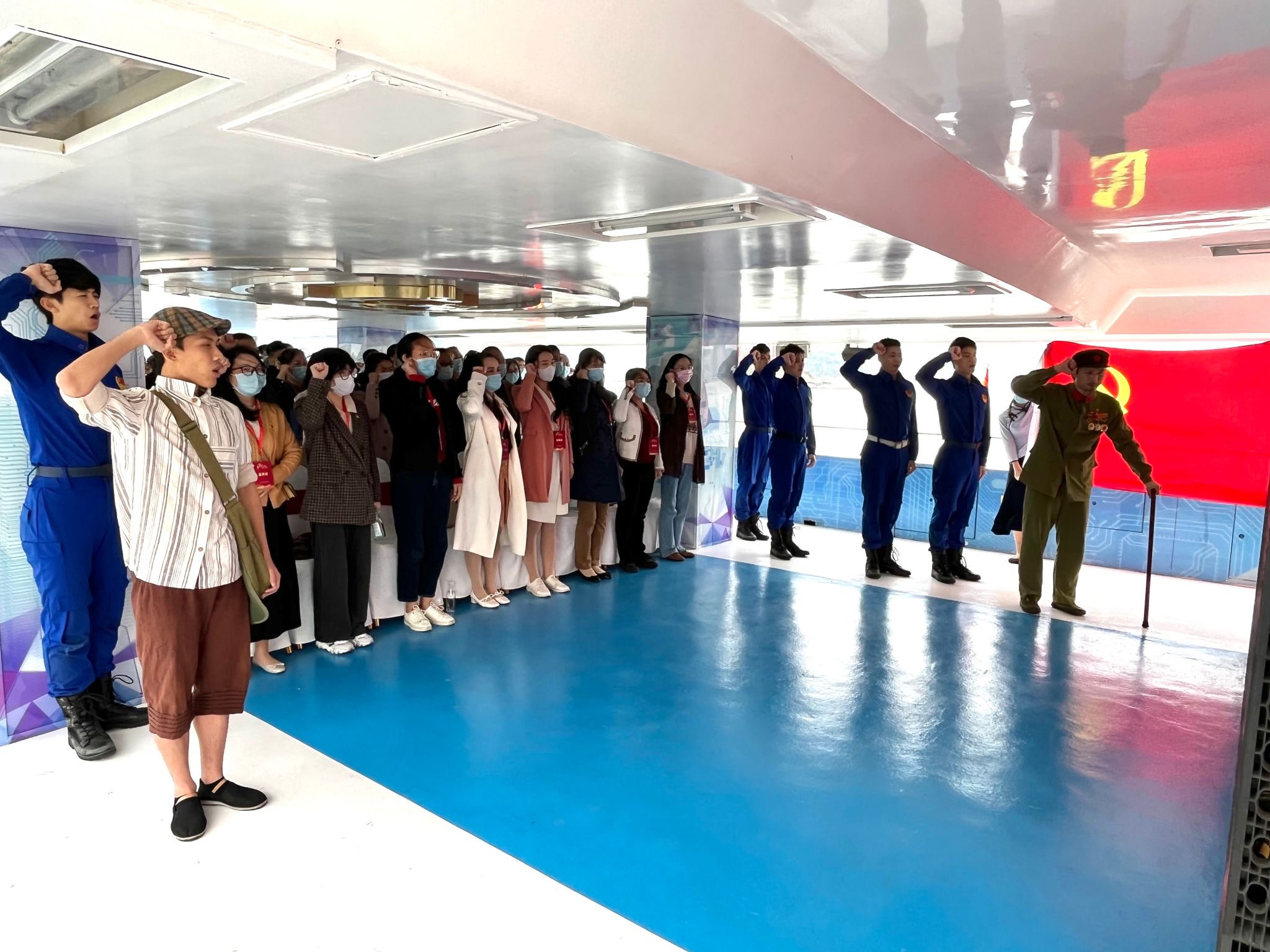 大家首先参观了船舱中“革命情怀”“特区使命”“时代典范”三层主题展馆。随后,大家在乘风破浪中“穿越”时空,深入体验观看海上沉浸式情景项目——《碧海红帆》,重温入党誓词,坚守初心使命。在实景短剧、舞蹈表演和“声光电”的演绎中,身临其境地“经历”了罗扬才和其余两名共产党员成立福建省第一个党组织——中共厦门大学支部和“党的好女儿”刘惜芬同志的真实英雄事迹场景、学习领略了厦门改革开放期间经济特区建设进程及特区在全方位推进高质量发展超越中所取得的辉煌成就。