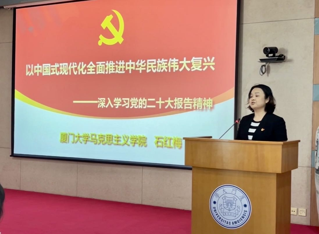 3月14日下午,在颂恩楼220报告厅,为进一步深入学习宣传贯彻党的二十大精神,促进党员相互学习交流,形成“共建组织、共抓队伍、共享资源、共谋发展”的党支部建设新格局,审计处党支部联合财务处、科技处、社科处、基建处、中医系、建筑与土木工程学院党政后勤教工党支部、管理学院2021级审计专硕支部等8个党支部开展共建联学主题党日活动,邀请厦门大学学习贯彻党的二十大精神宣讲团成员、马克思主义学院党委书记石红梅教授为全体党员作《以中国式现代化全面推进中华民族伟大复兴——深入学习党的二十大精神》的专题辅导报告。会议由校机关党委委员廖青同志主持。