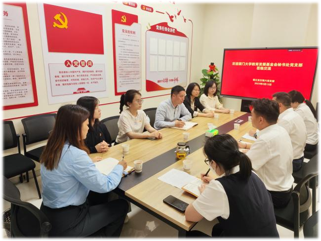 为深入学习贯彻习近平新时代中国特色社会主义思想,全面贯彻落实党的二十大精神,主动强化基金会与捐赠单位的联系,5月12日,教育发展基金会秘书处党支部与中国工商银行厦门鹭江支行第六党支部联合开展“学思想 建新功”主题党日。